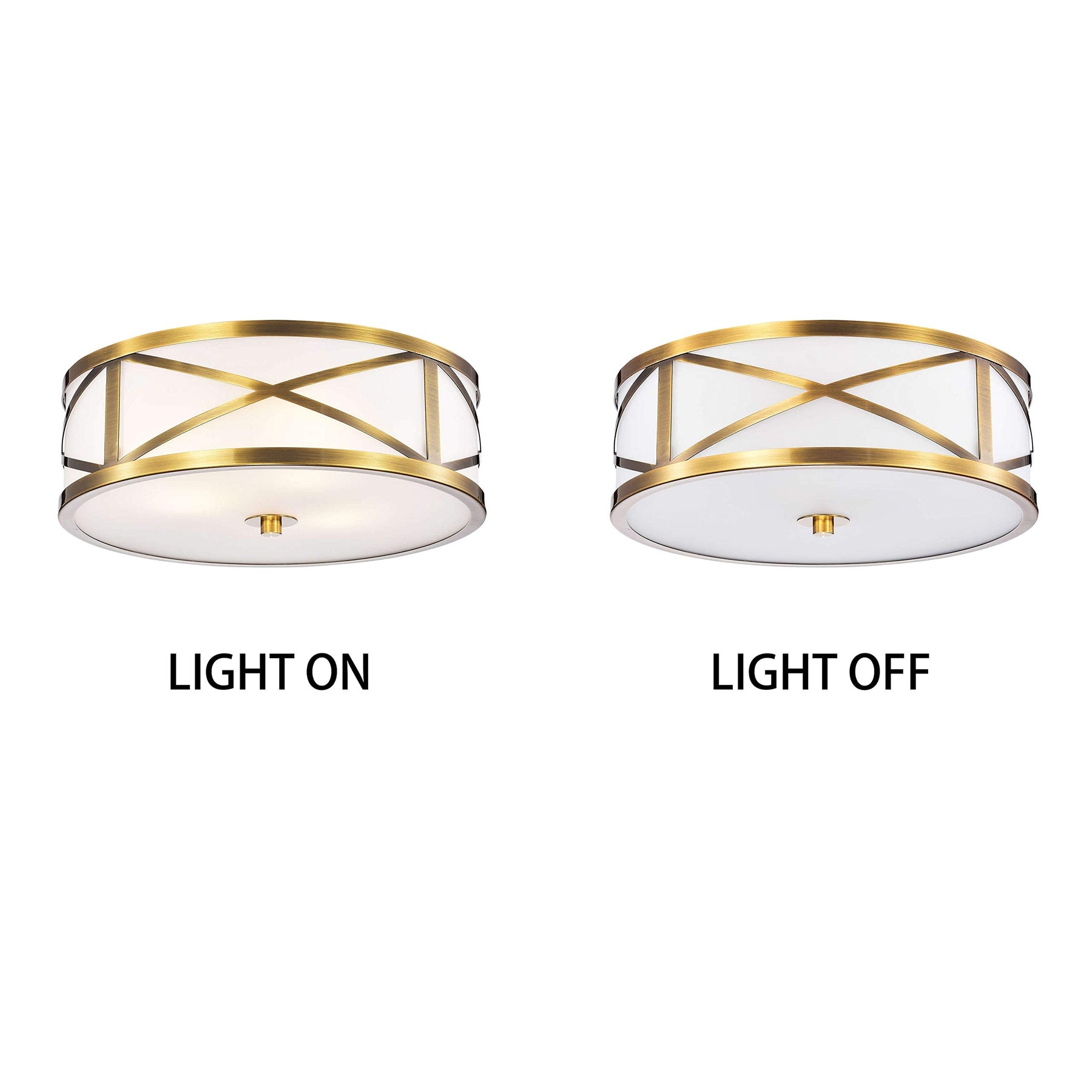 The Lighting Store Blanca Metallic Goldtone Metal 'X' Frame Glass Drum Shade Flush Mount