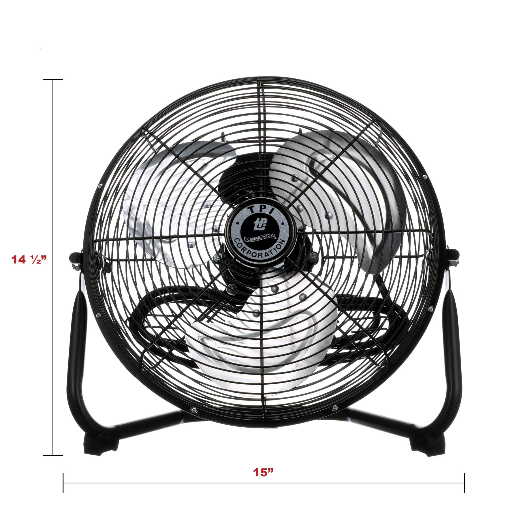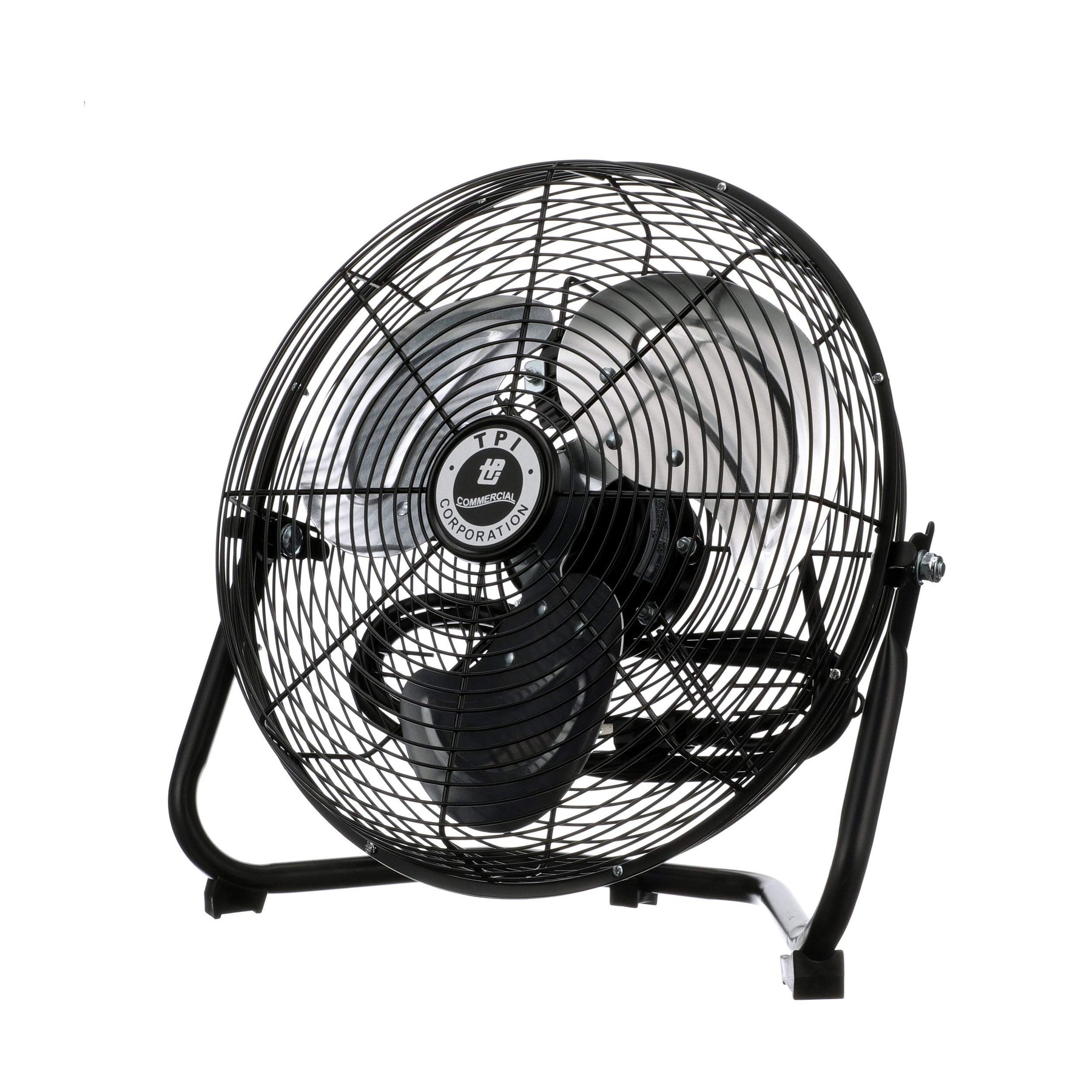 HIGH VOLUME POWER SAVING FAN: The TPI Corporation CF12 commercial floor fan is designed for high-volume air circulation, making an air circulator fan ideal for modern, contemporary, or traditional indoor applications. This 120-Volt, 3-speed, non-oscillating air floor circulating fan is sturdy and dependable, perfect for all types of personal work and play spaces. | CORROSION RESISTANT STEEL DESIGN: Featuring a corrosion-resistant steel floor fan head in a black finish, this commercial electric fan includes a steel frame and protective rubber floor vibration isolators. The adjustable tilt angle and 12-inch diameter 3-aluminum paddle blades ensure high-velocity performance, while the 1/12 horsepower motor is UL and C/UL listed for safety. | DURABLE AND READY TO USE: This 12 inch floor fan delivers high airflow and is lightweight, shipped fully assembled for easy plug-and-play operation. The hassle-free electric fan is perfect for gyms, offices, basements, restaurants, workshops, protected patio areas, bedrooms, classrooms, and garages, providing easy DIY cooling solutions. | EFFECTIVE AIR CIRCULATION: The TPI Corporation CF12 floor fan 12 inch maintains steady airflow, effectively eliminating suffocation in enclosed spaces. TPI corporation fan's all-metal construction tilts 180 degrees, allowing for directional airflow control to meet your cooling needs, ensuring a comfortable environment wherever it's used. | EASY MAINTENANCE AND CLEANING: Equipped with OSHA-approved grills and retainer clips, this heavy-duty fan allows easy access to the blades and grills for simple cleaning. Keep your TPI Corporation CF12 commercial outdoor fan in top condition with minimal effort, ensuring long-lasting, efficient performance in any setting.