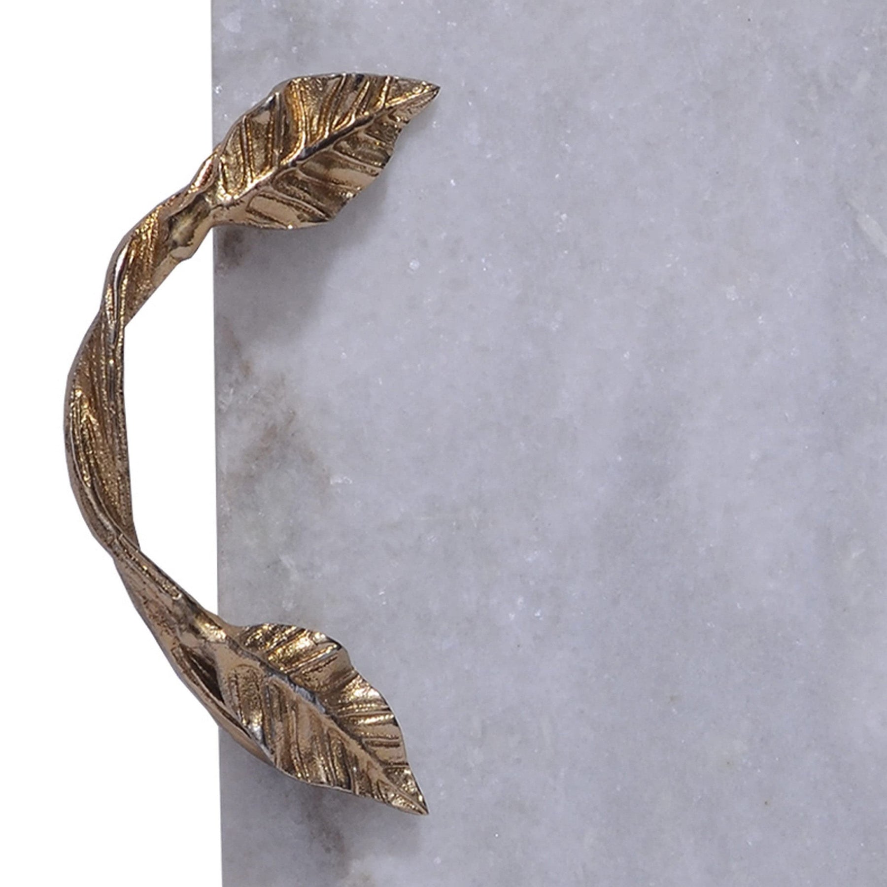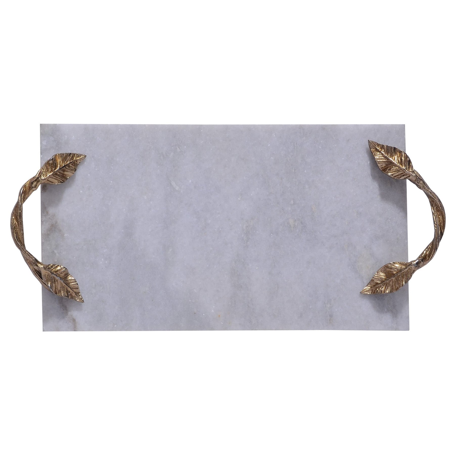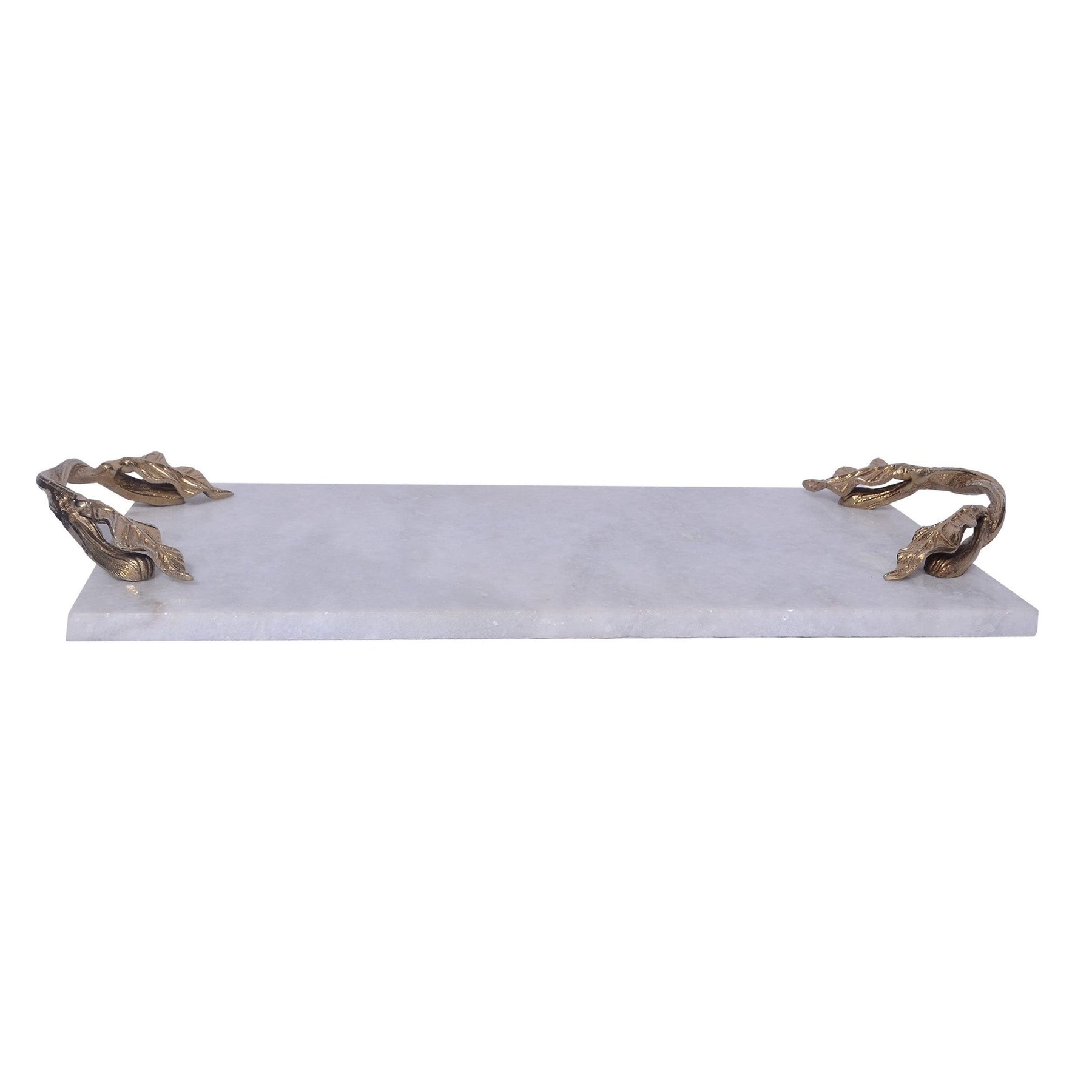 Tray with Marble Frame and Carved Metal Handles White Gold