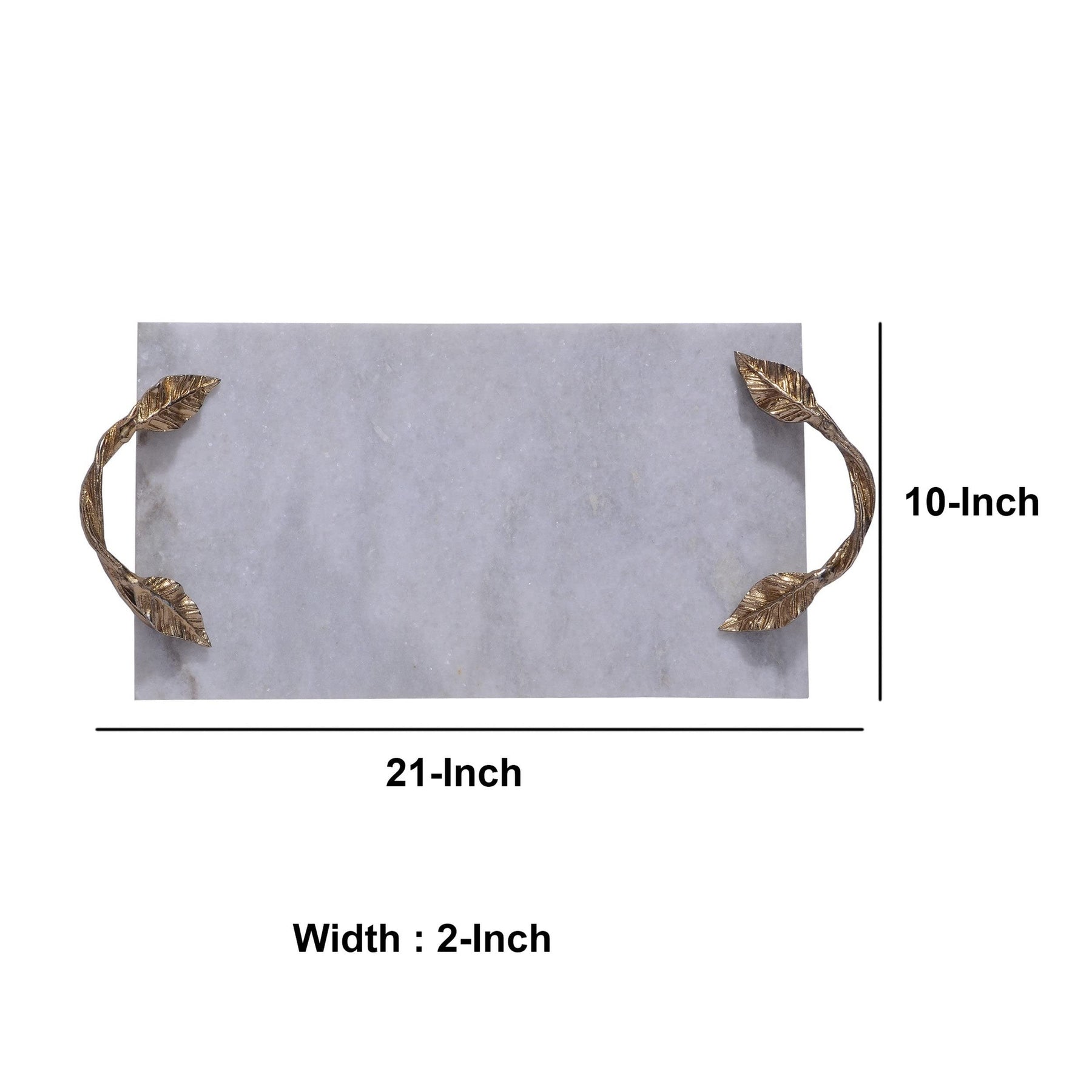 Tray With Marble Frame And Carved Metal Handles White Gold Modern Contemporary Iron Natural Finish | Design/Look : Modern & Contemporary. Material : Iron, Marble. Finish : Natural Finish. Accent type : Trays. Assembly : Assembled | Product Size: 10.0 In. L X 21.0 In. W X 2.0 In. H.