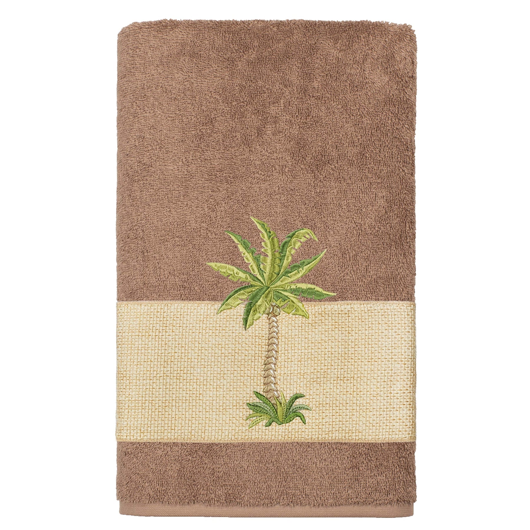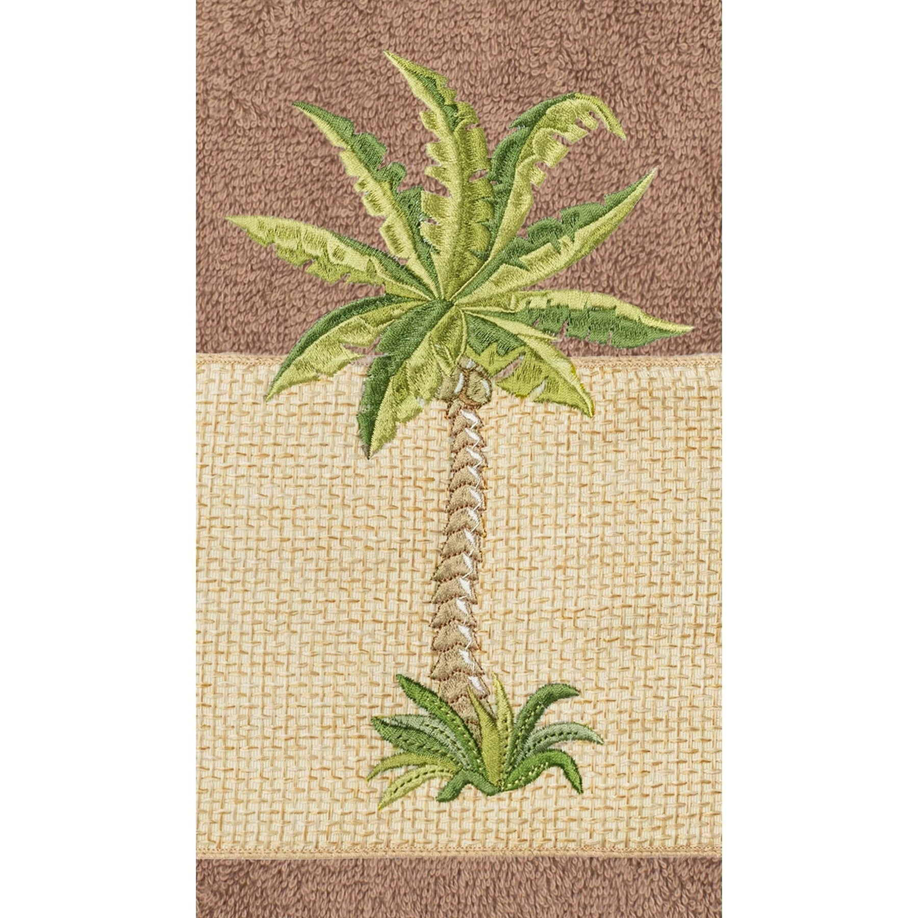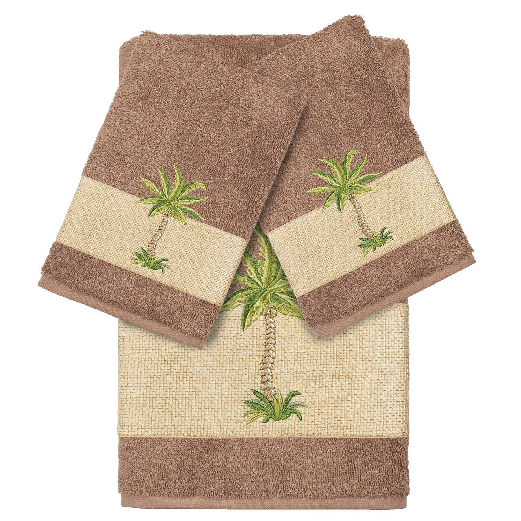 Turkish Cotton Palm Tree Embroidered Latte Brown 3-Piece Towel Set