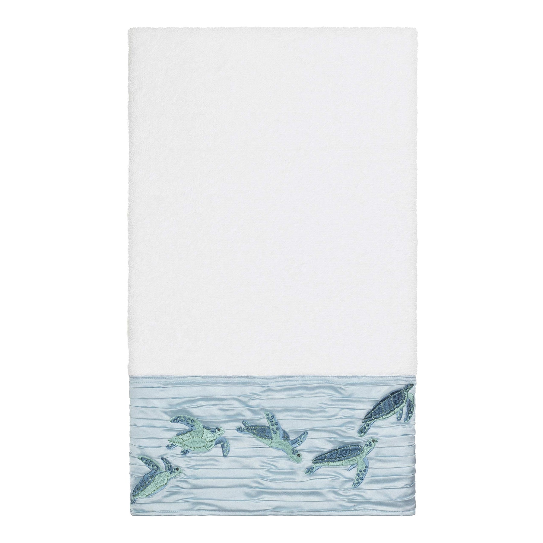 Turkish Cotton Turtles Embroidered White 4-Piece Towel Set Blue Terry