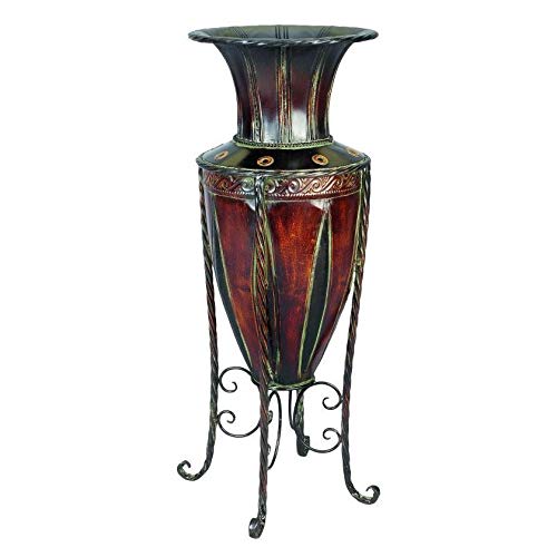 Tuscany Style Metal Vase Gold Rustic Iron | Made of iron. Rustic style. Red, black, and bronze color. Geometric accents. Includes a scrolled stand. Style : Rustic. Material : Iron, Metal. Type : Table.Product Color: Gold | Measures 27 inches high x 10 inches in diameter.