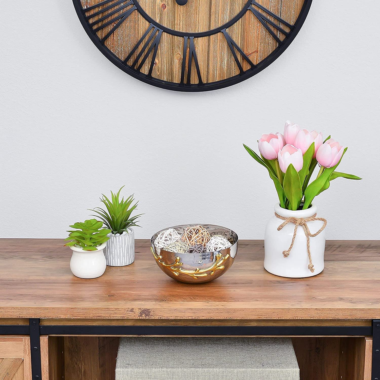 Two Tone Nickel Plated Decorative Serving Bowl With Gold Leaf Design Silver - Diamond Home USA
