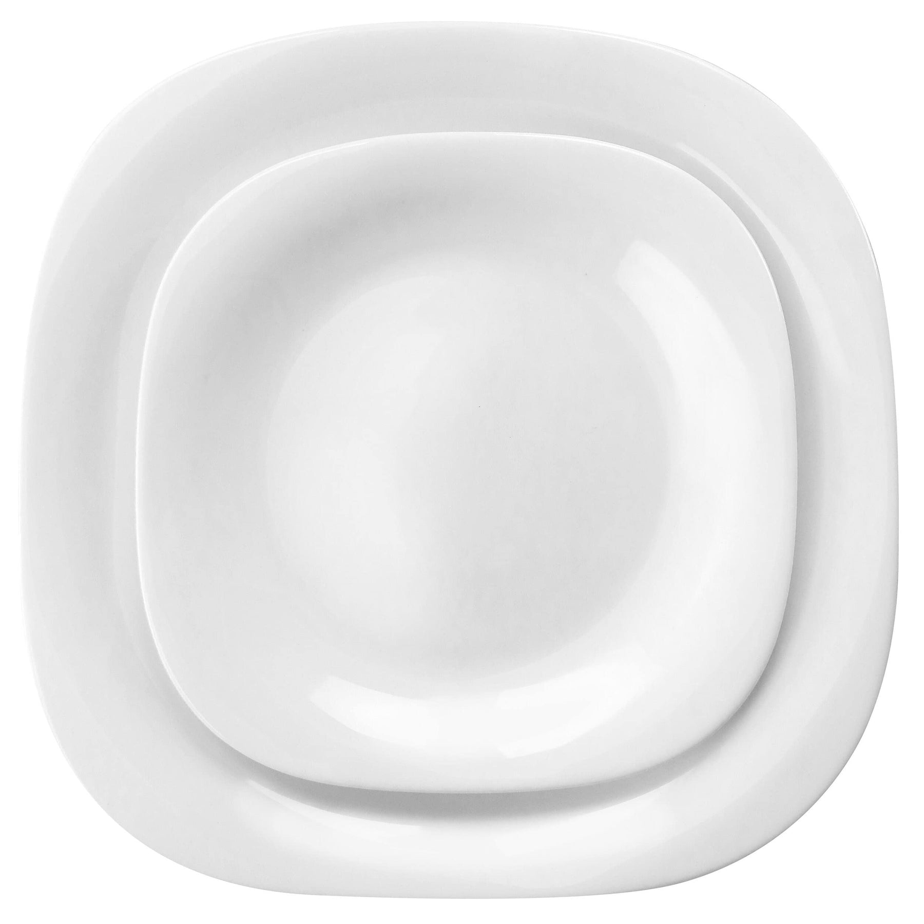 Ultra Plazza 12 Piece Tempered Opal Glass Dinnerware Set In White Solid Formal Square Dishwasher Safe | Design/Look : Formal. Material : Glass. Pattern : Solid. Care instruction : Dishwasher Safe. Season or holiday : All Seasons. Color : White. Dishwasher Safe. Set includes : 12 Piece | Product Size: 11.3 In. W X 3.4 In. H X 15.6 In. D.
