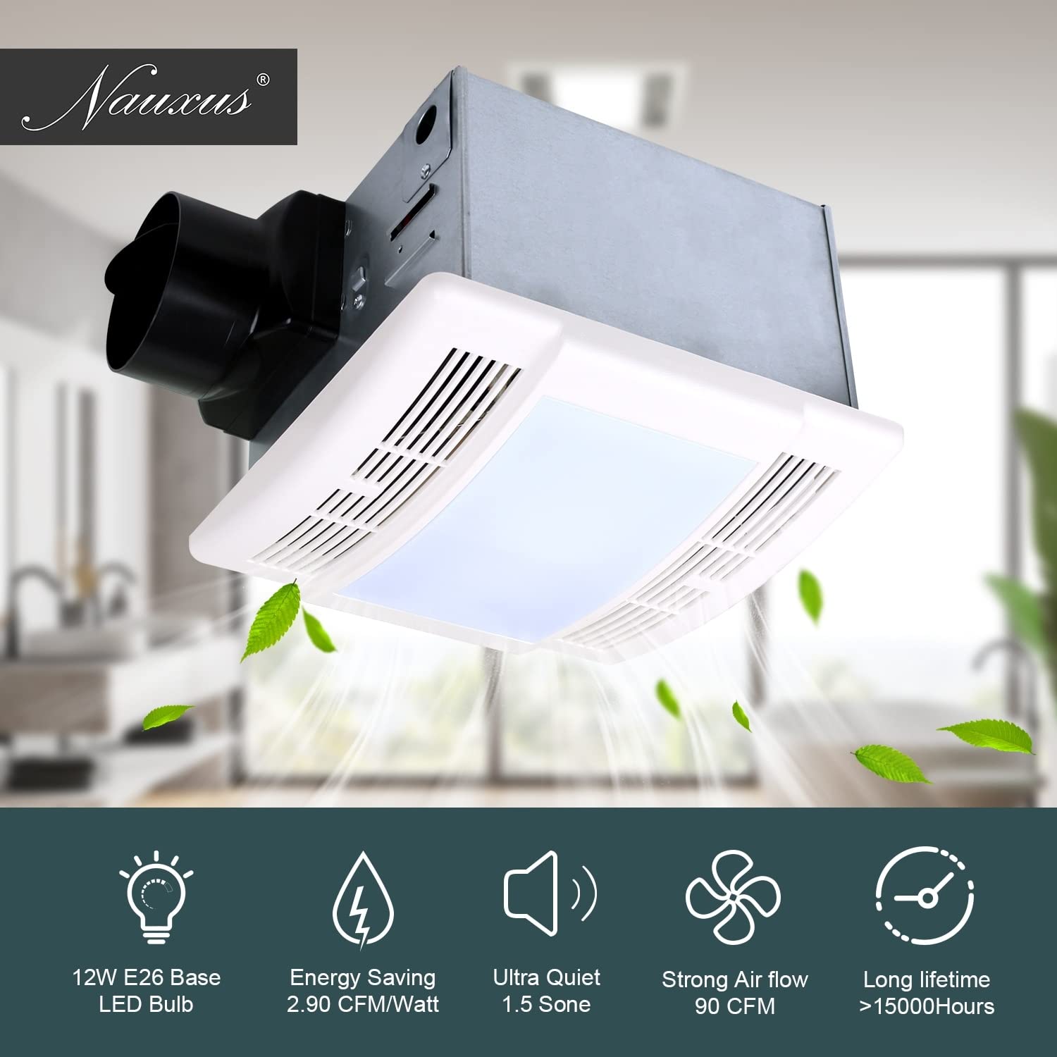 Ultra Quiet Bathroom Exhaust Fan With Led Light 90cfm 1.5 Ventilation Square Frosted Plastic Cover White Metal Includes Hardware | Material : Metal. Color : White | Product Size: 9.4 In. L X 9.4 In. W X 7.3 In. H.