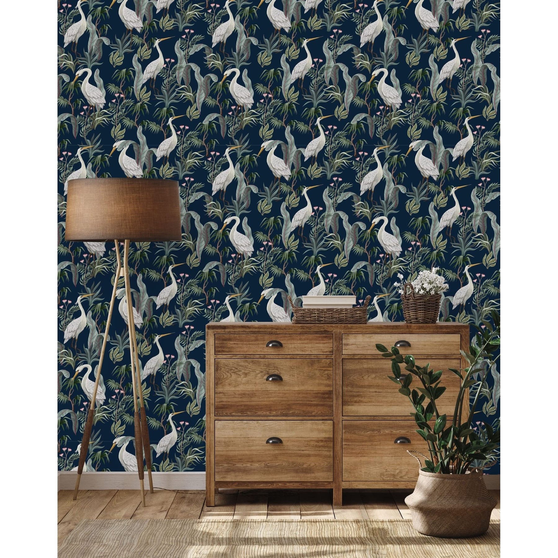 uniQstiQ Heron and Leaves Wallpaper Peel-and-Stick 25" W x 225" H 25"W x 225"H - Peel-and-Stick