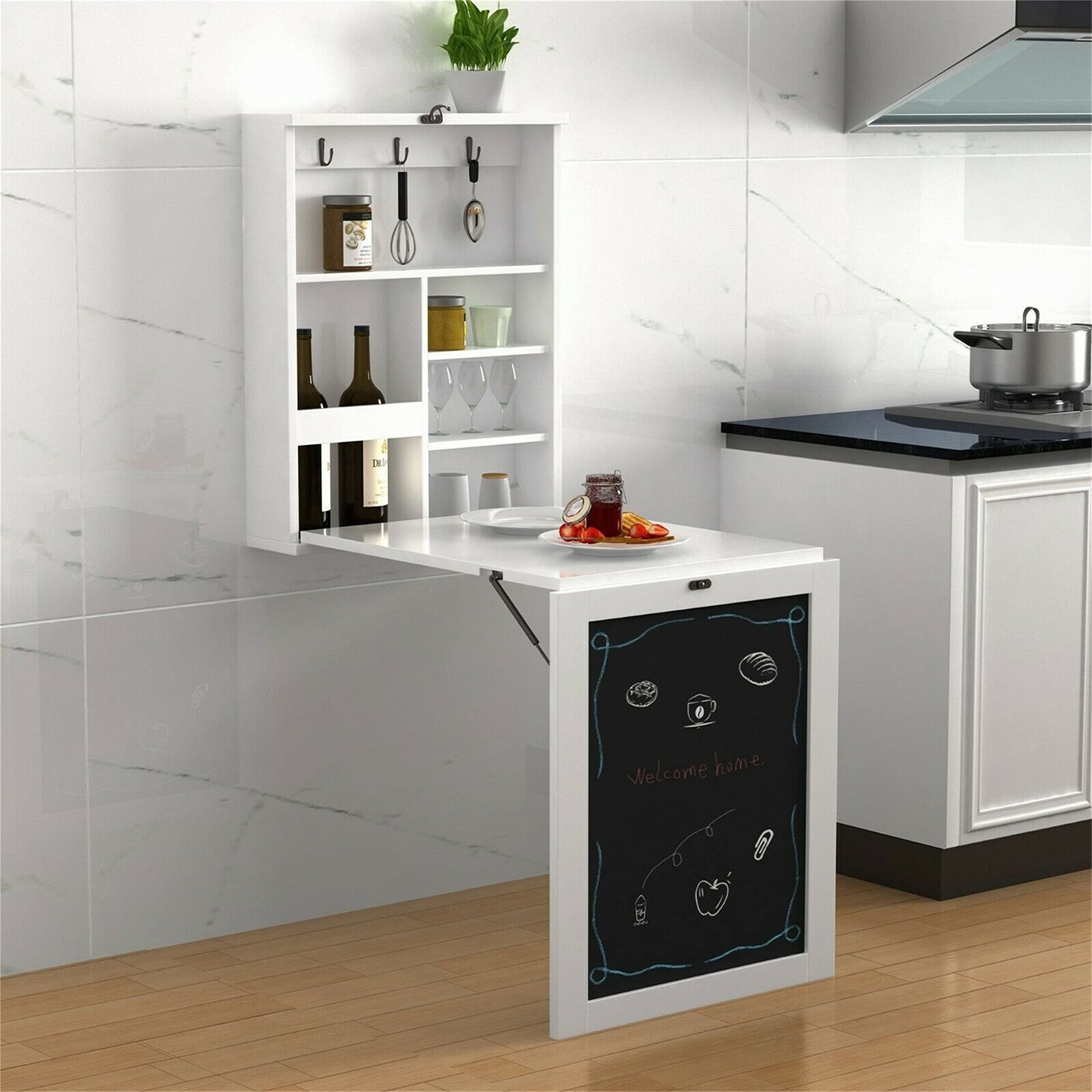 Wall Mounted Table Fold Out Convertible Writing Desk W/Storage Chalkboard - Diamond Home USA