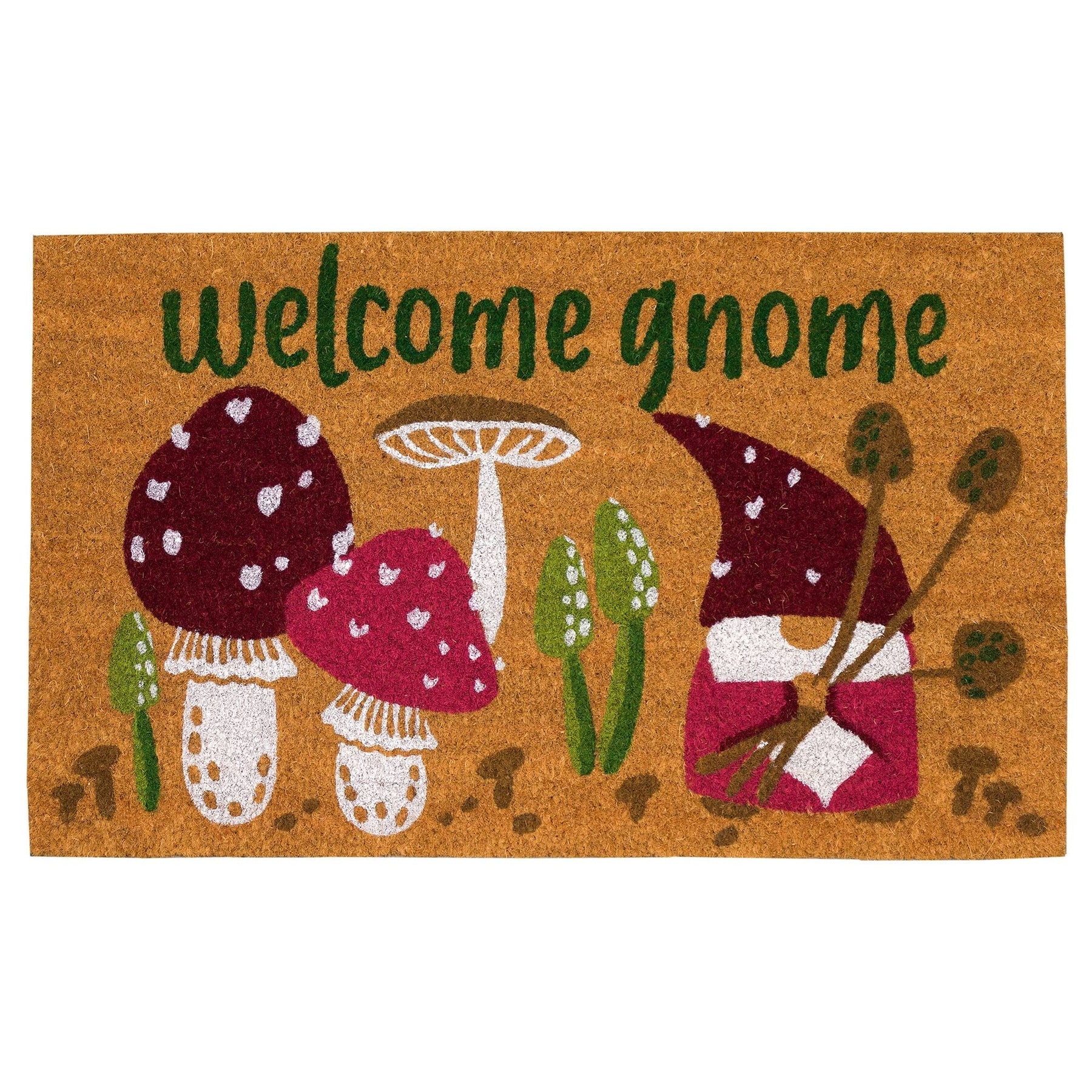 Welcome Gnome Outdoor Mat Tan Casual Novelty Rectangle Coir 1'6"