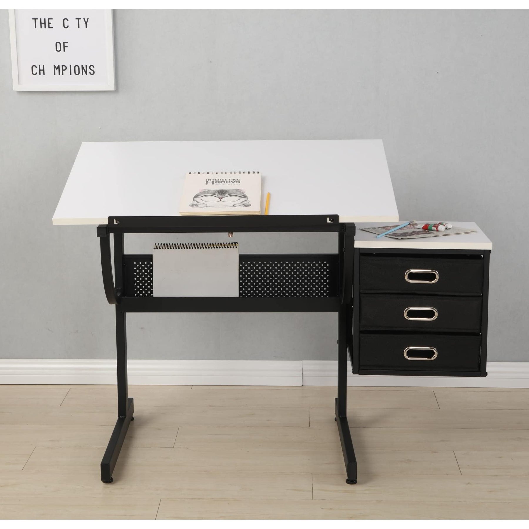 White Adjustable Drafting Drawing Table with Stool and 3 Drawers