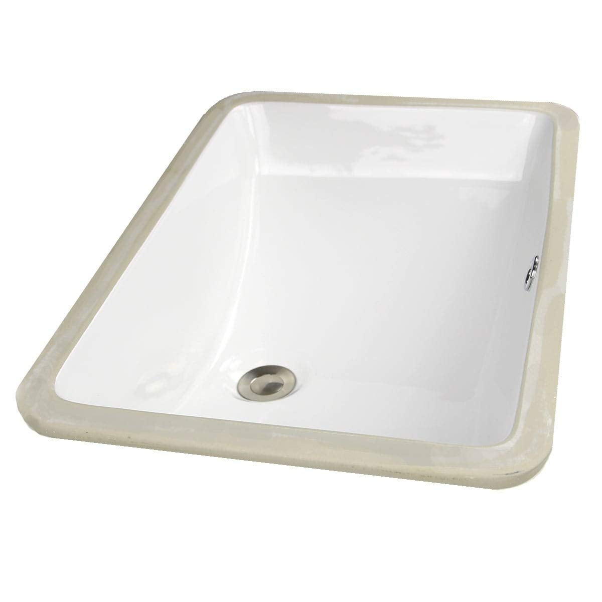 White Ceramic Undermount Vanity Sink Rectangle Glossy