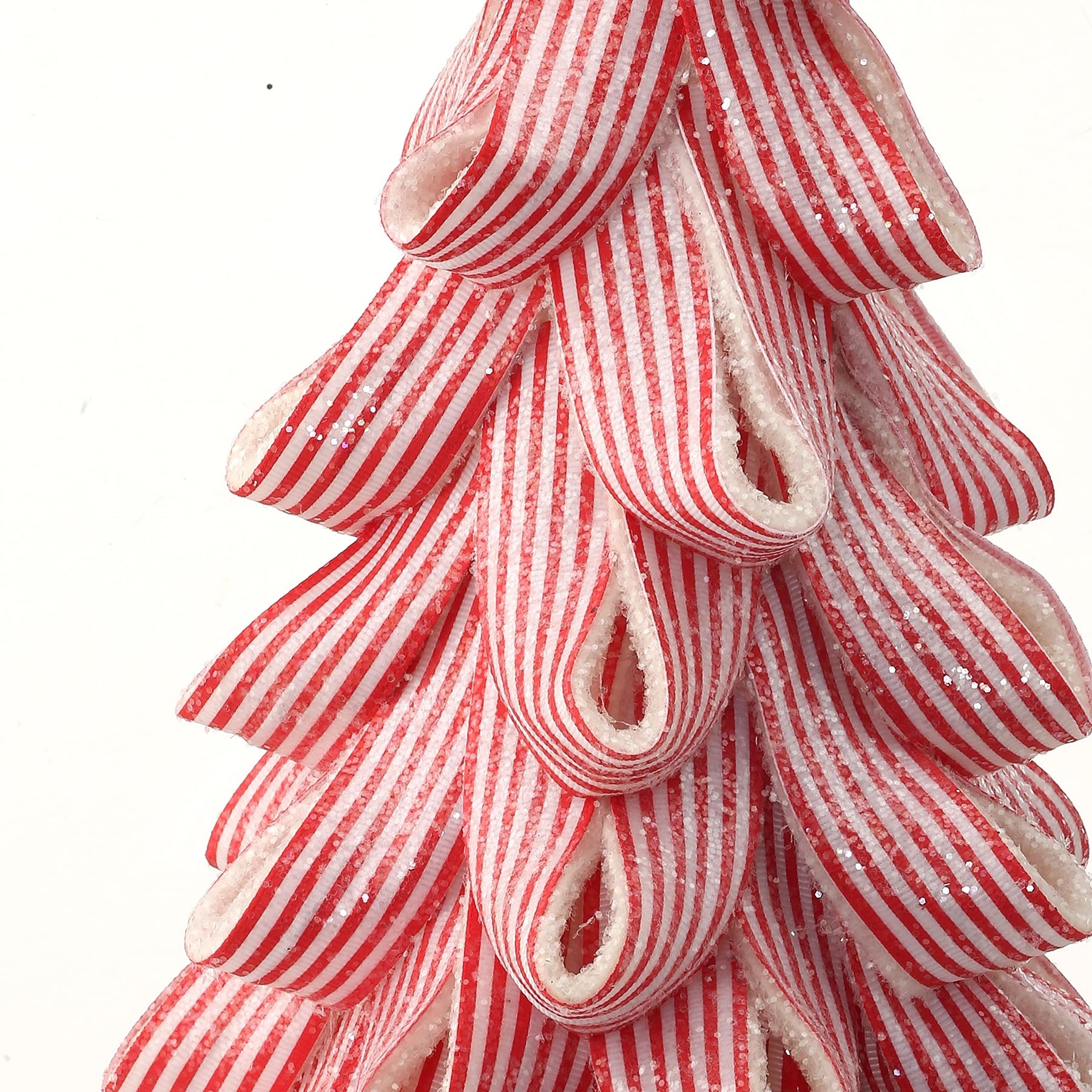 13.5" Iced Peppermint Candy Ribbon Tree Red Polyester Un-lit