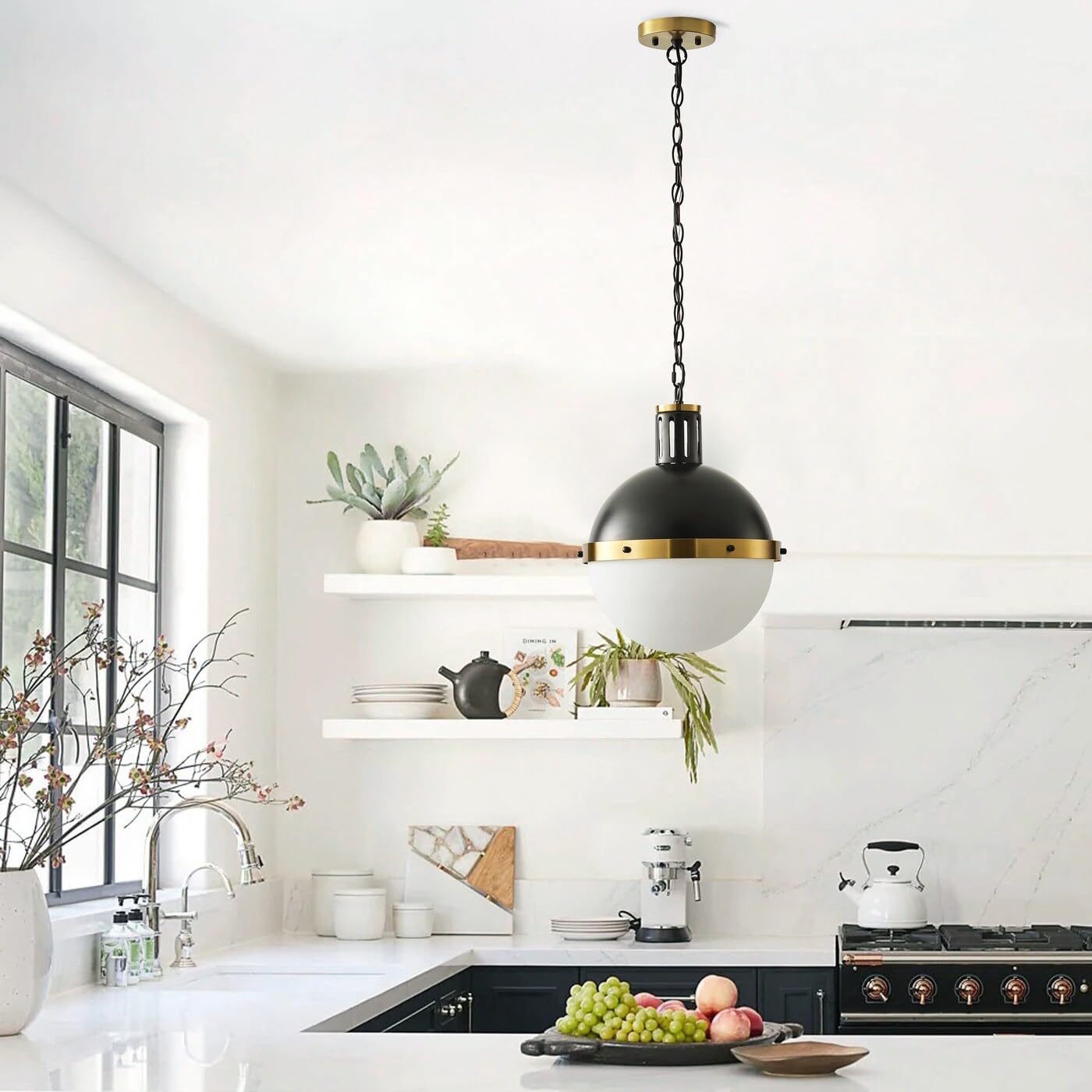 13-inch Matte Black Globe Light with Half Opal Glass Shade