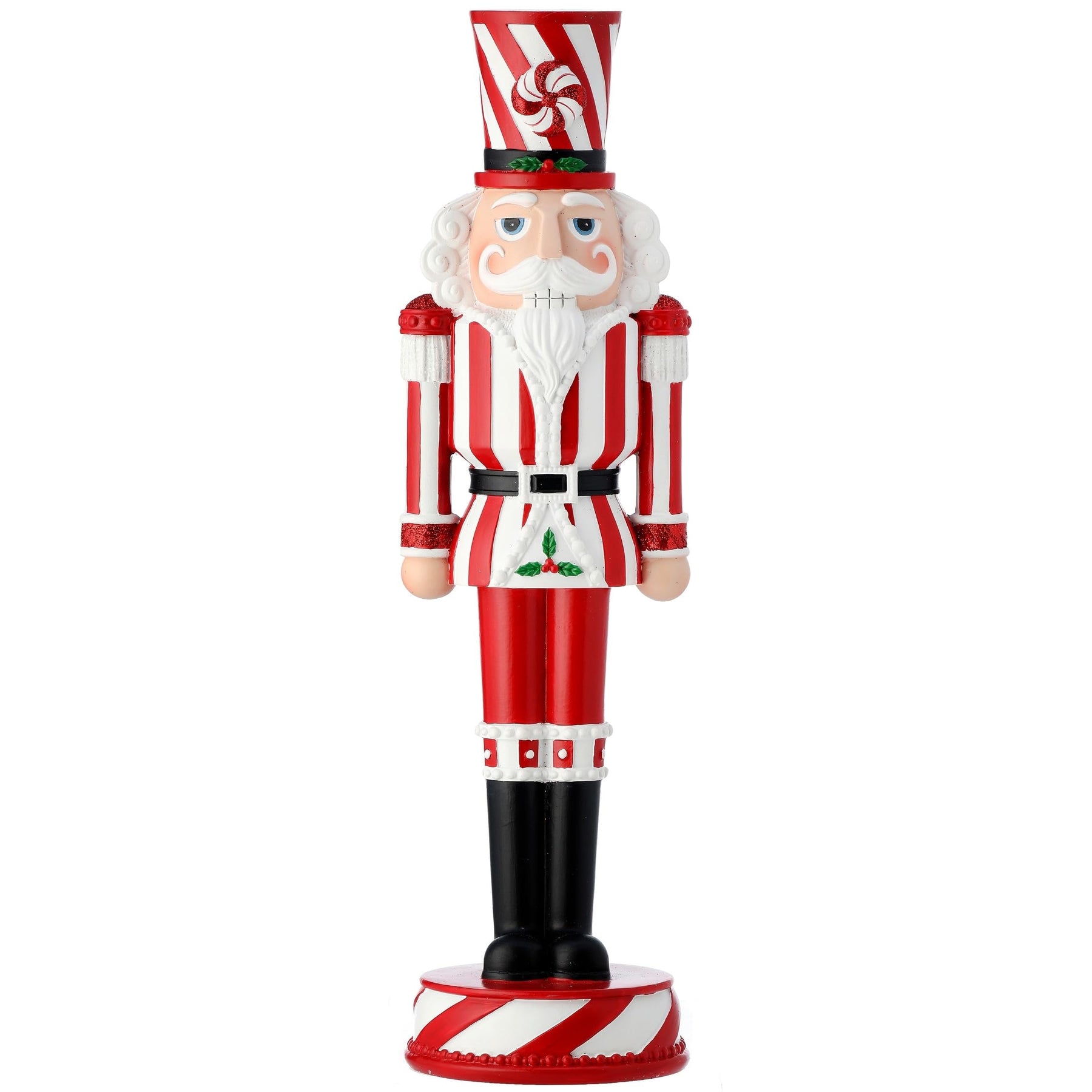 13" Resin Peppermint Nutcracker Red Polyresin