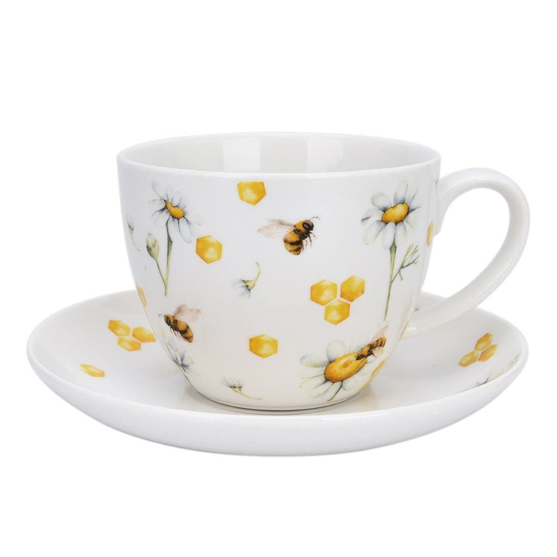 15.2 Fl Oz Honey Bee Tea Coffee Cup Saucer Yellow