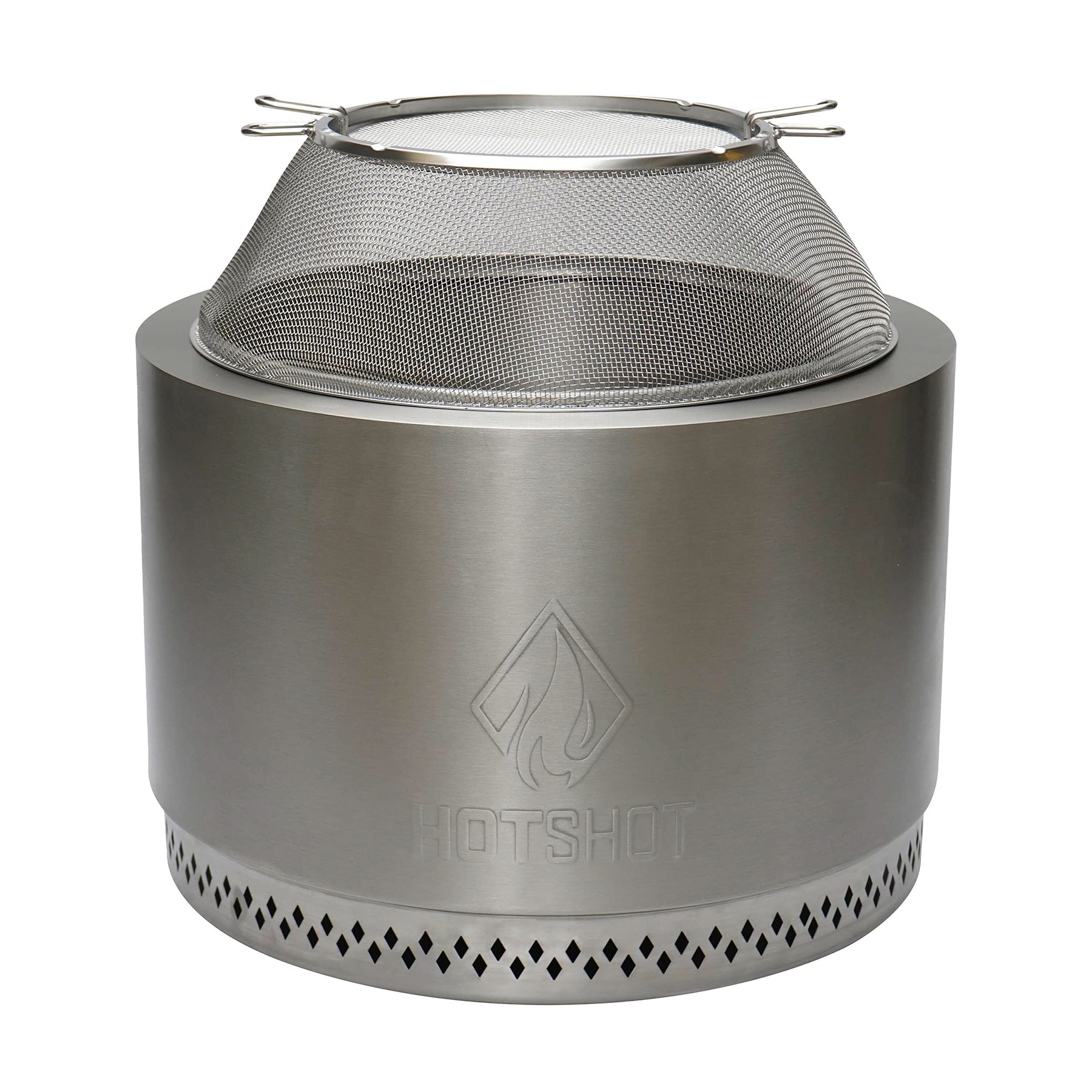 15" Hotshot Wood Burning Fire Pit Mesh Screen Silver Round