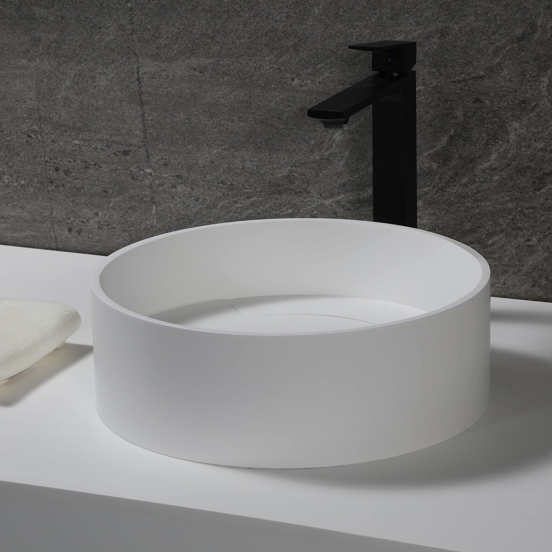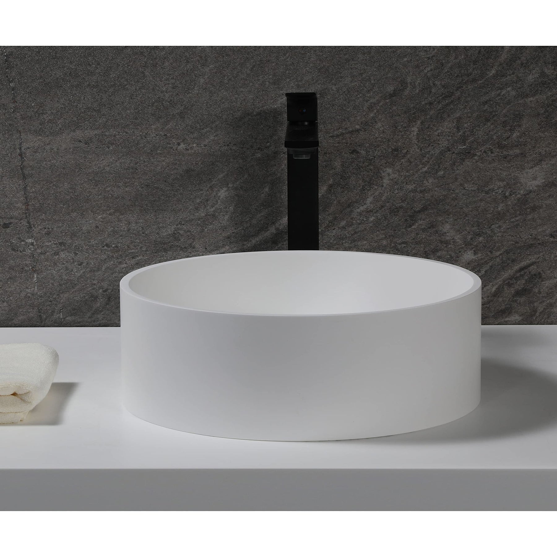 15" Round White Matte Solid Surface Resin Sink Stone | Material : Stone. Finish : Matte. Color : White | Product Size: 15.13 In. L X 15.13 In. W X 4.85 In. H.