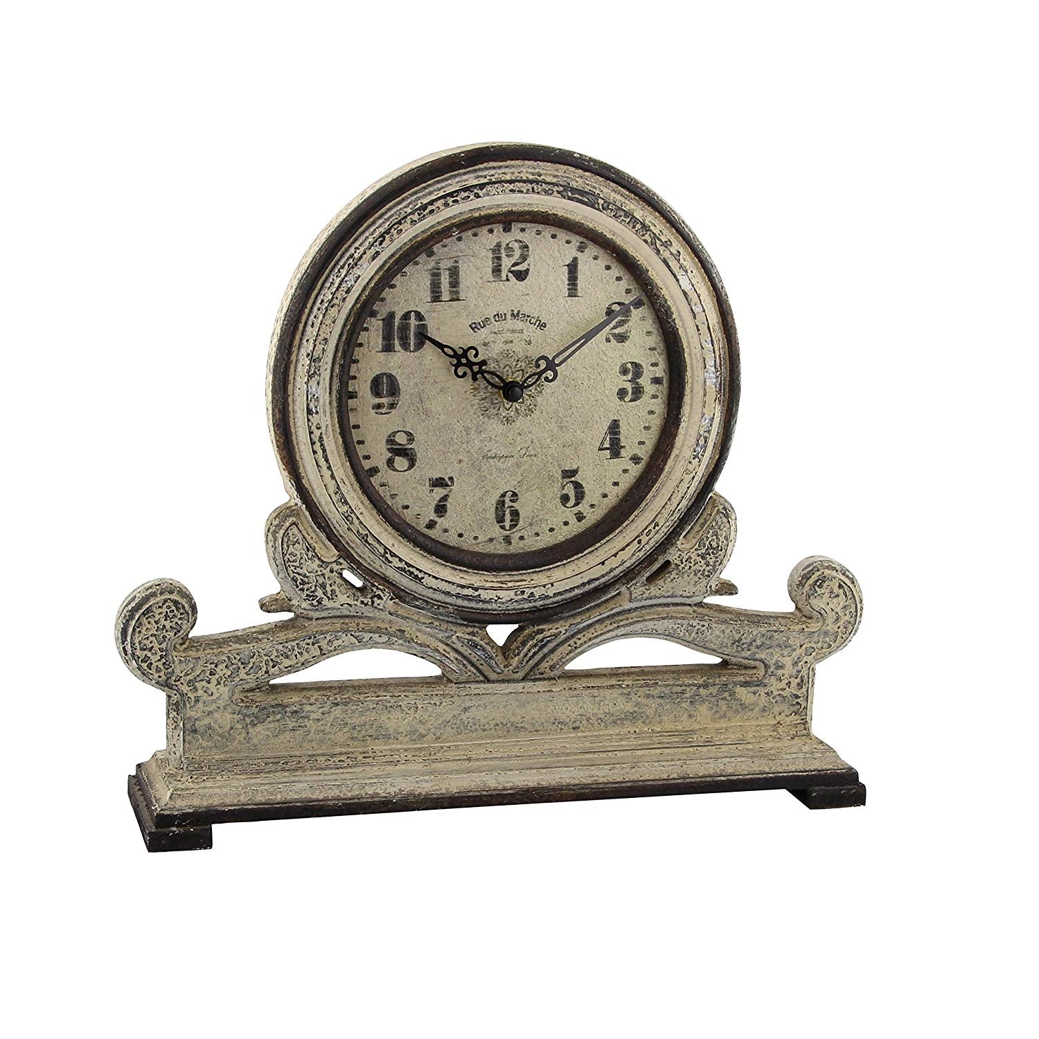 16"x15" Antique Mahogany Mantle Clock Indoor Use Grey Distressed White