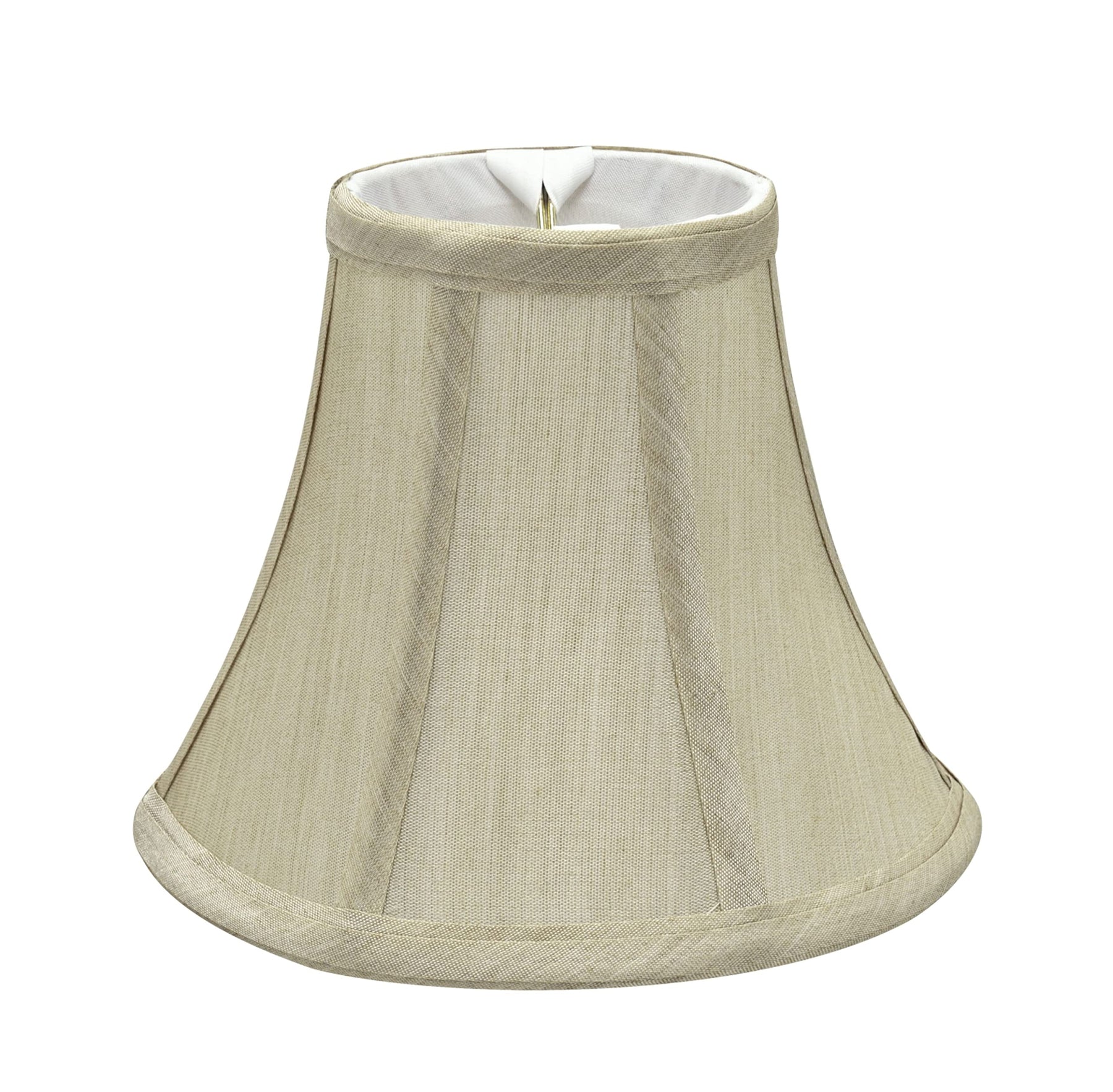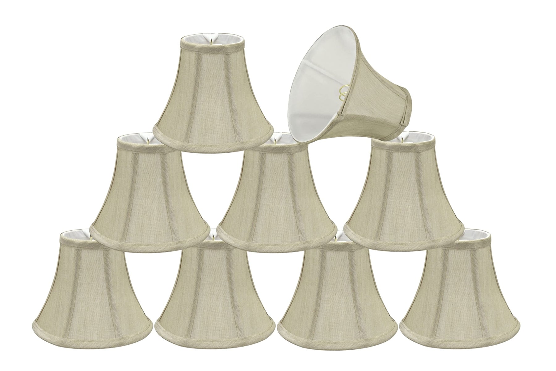 Aspen Creative Item #30039-9Aspen Creative offers a 9-pack bell shaped clip-on lamp shade in beige that will enhance any space.Shade Dimensions: 3" Top x 6" Bottom x 5" HeightThe shade is made with a clip-on styled fitter that is most compatible with torpedo chandelier light bulbs but can also be used with other bulbs that are similar in size. We recommend that any light bulbs that is used with this product be a candelabra base (E12) or medium base (E26) and 40 wattage maximum, we do not recommend the use of bent tip light bulbs or standard sized light bulbs.Crafted with precision and attention to detail, our lamp shades are made with high-quality materials that are built to last. They are made to withstand daily use while still maintaining their shape and beauty.This product is suitable for a wide range of lighting options including small table lamps, accent lamps, candle stick lamps, chandeliers, and wall sconces, and bedroom night light lamps.