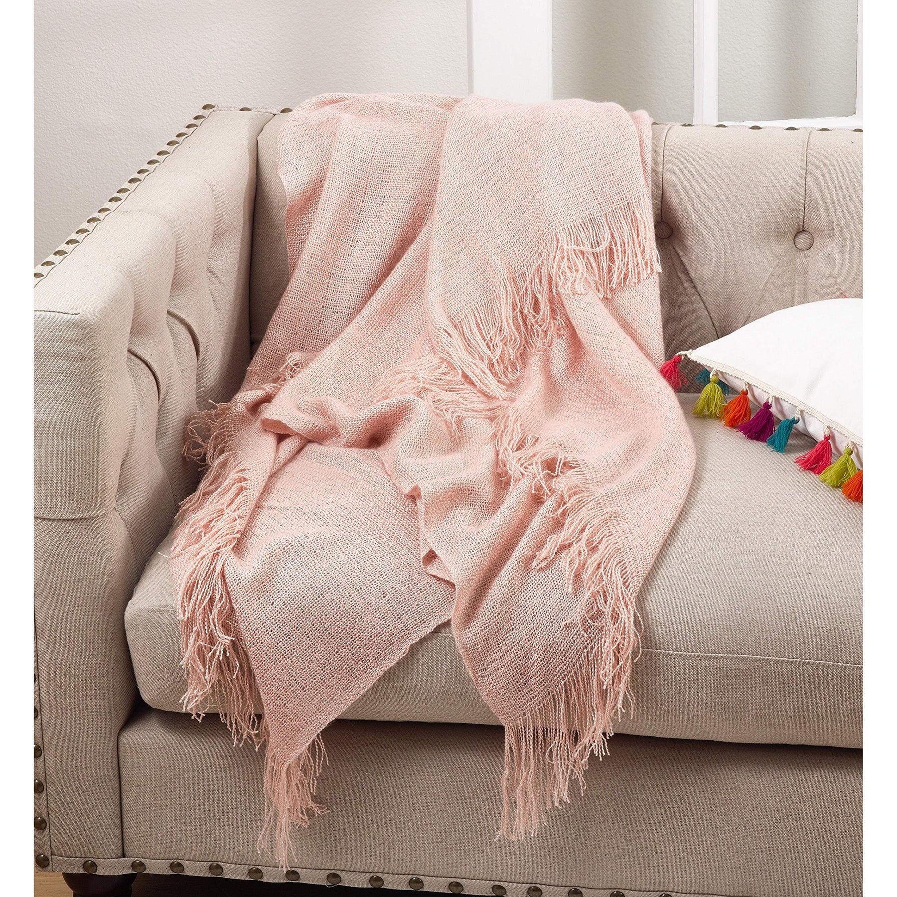Soft Pink Woven Throw Solid Color Victorian Acrylic
