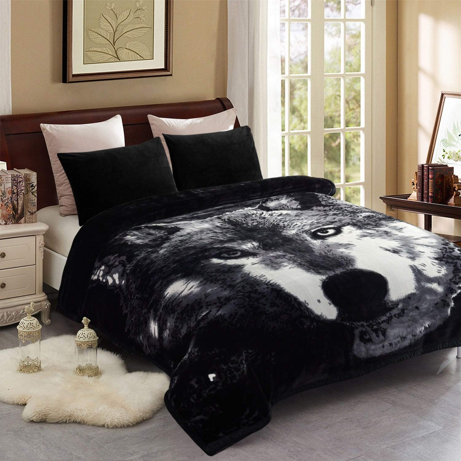 Wolf Printed Winter Heavy Blanket 10lbs Plush Korean Style King