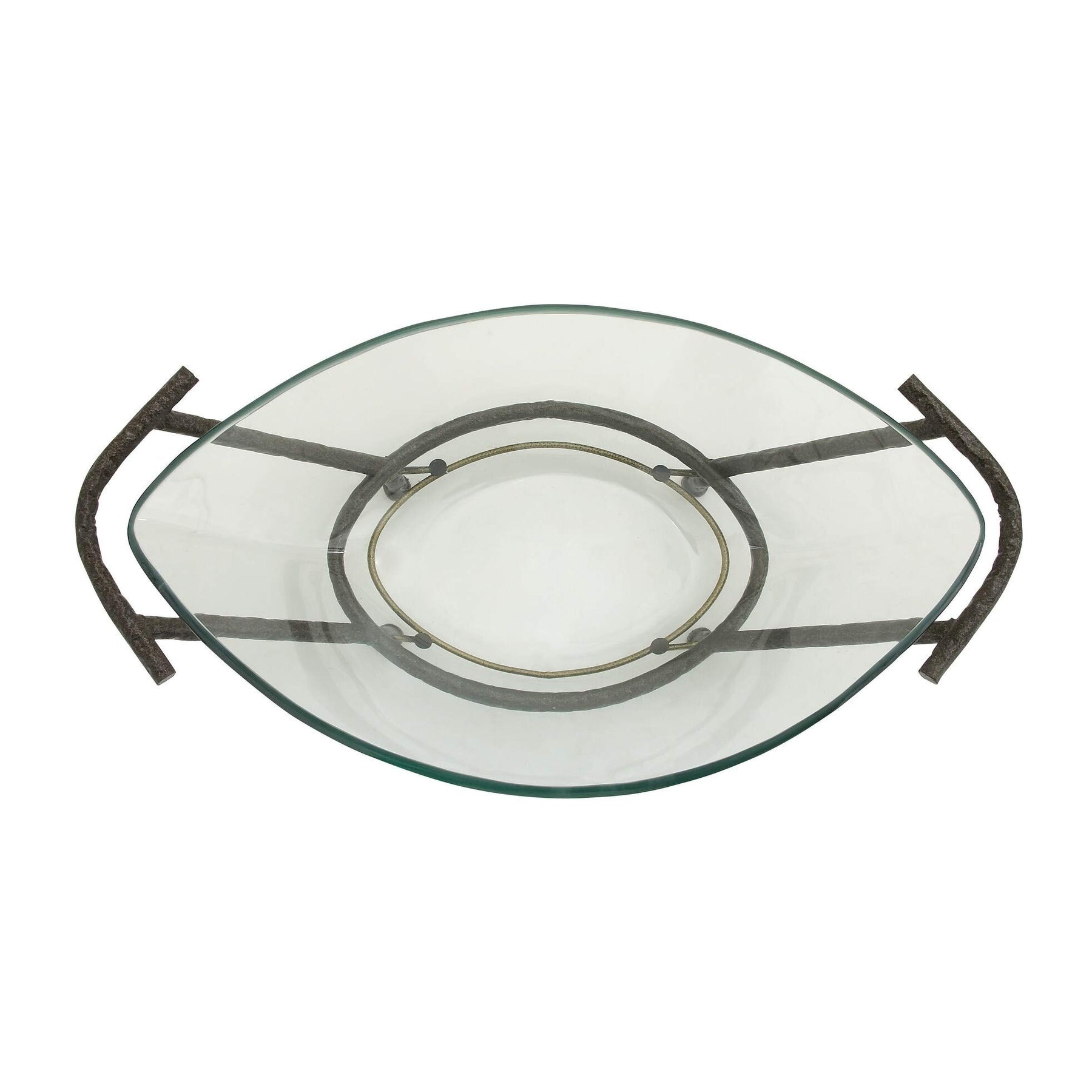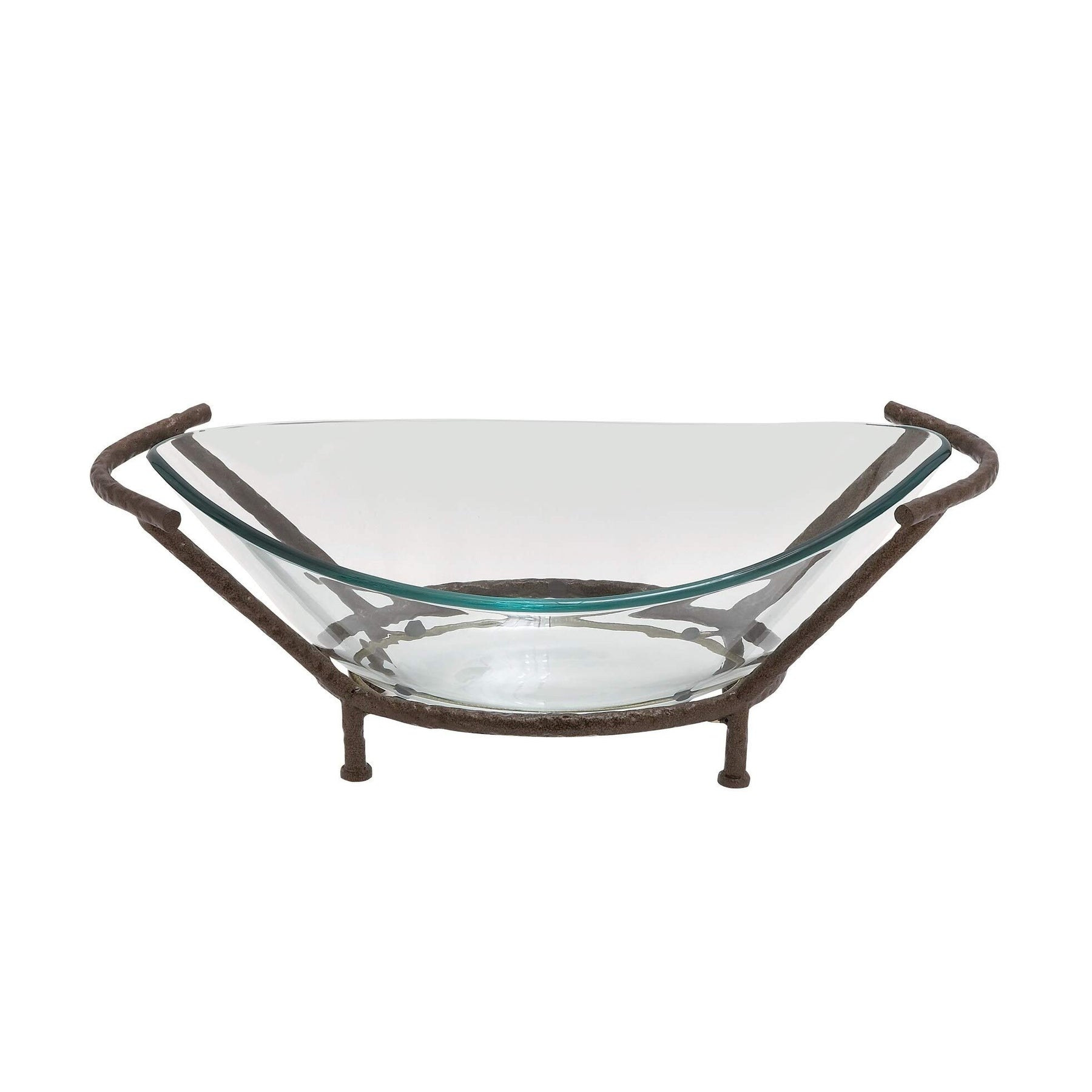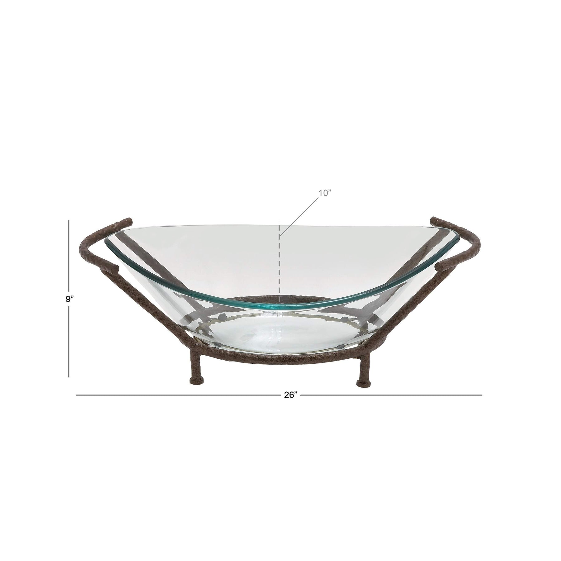Bowl and Metal Stand Green Glass Iron Clear - 26"W,