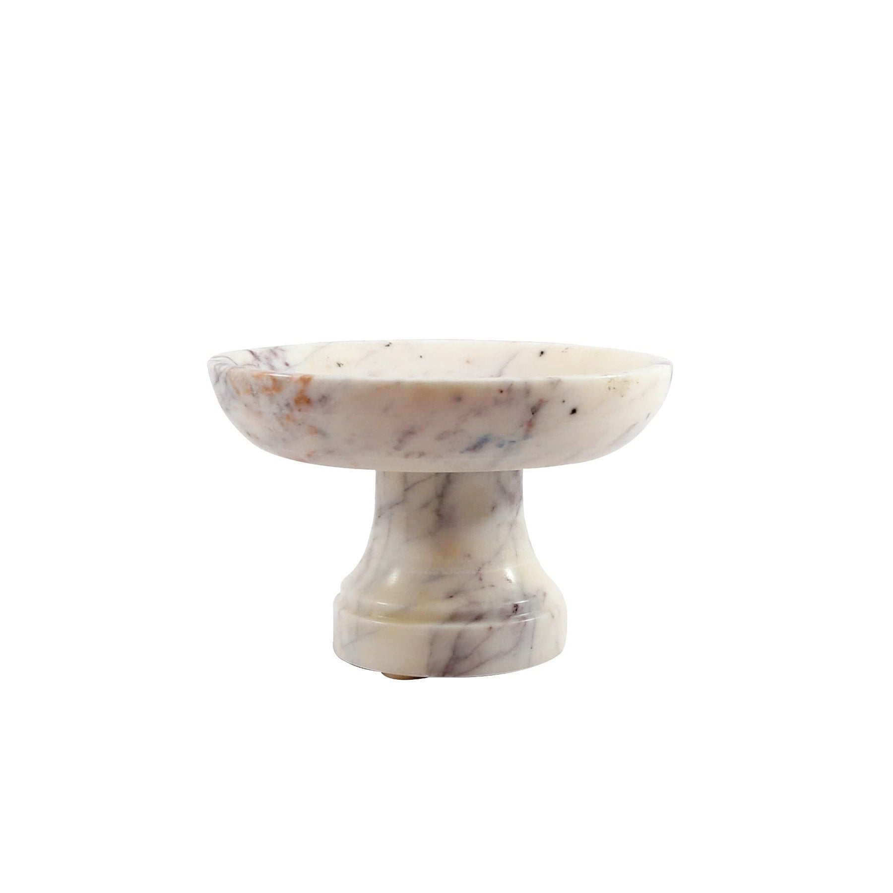 Gala Natural Marble Pedestal Bowl Off/White Solid Casual Round Stoneware 1 Piece Handmade