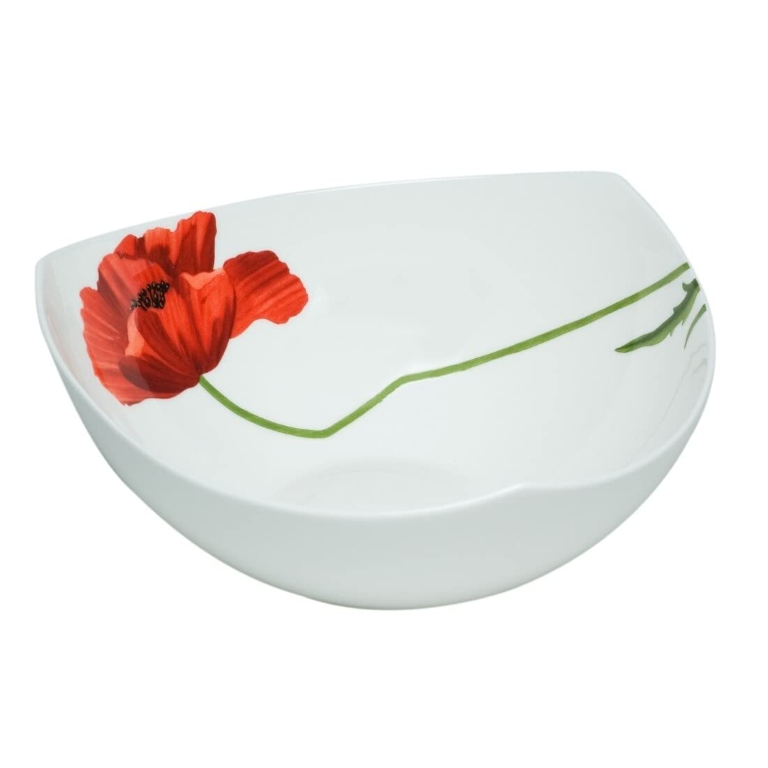 Knight Red Poppy Salad Bowl 9.75" White Floral Bone China