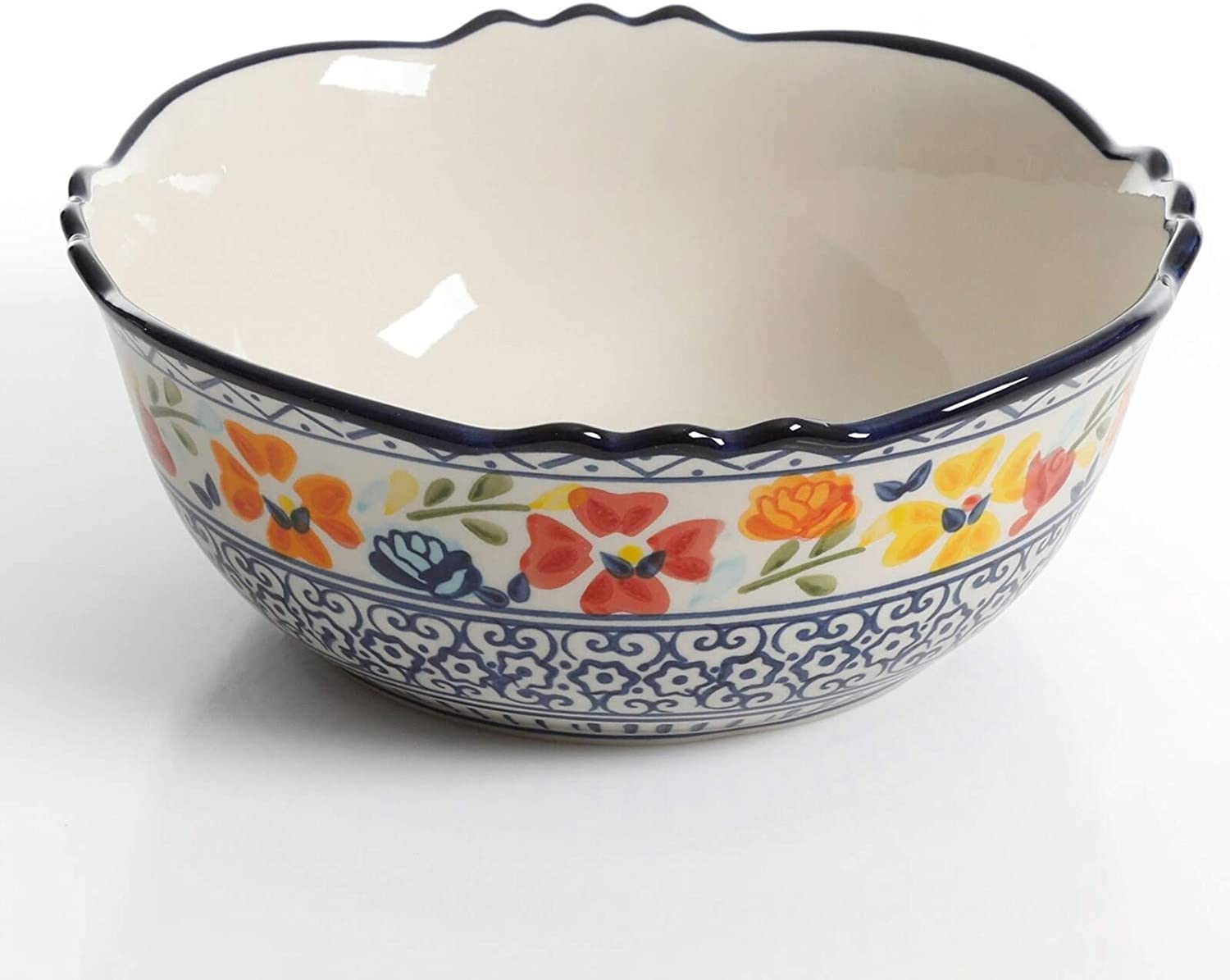 2 Piece Stoneware Bowl Set Color Floral Country Round Microwave