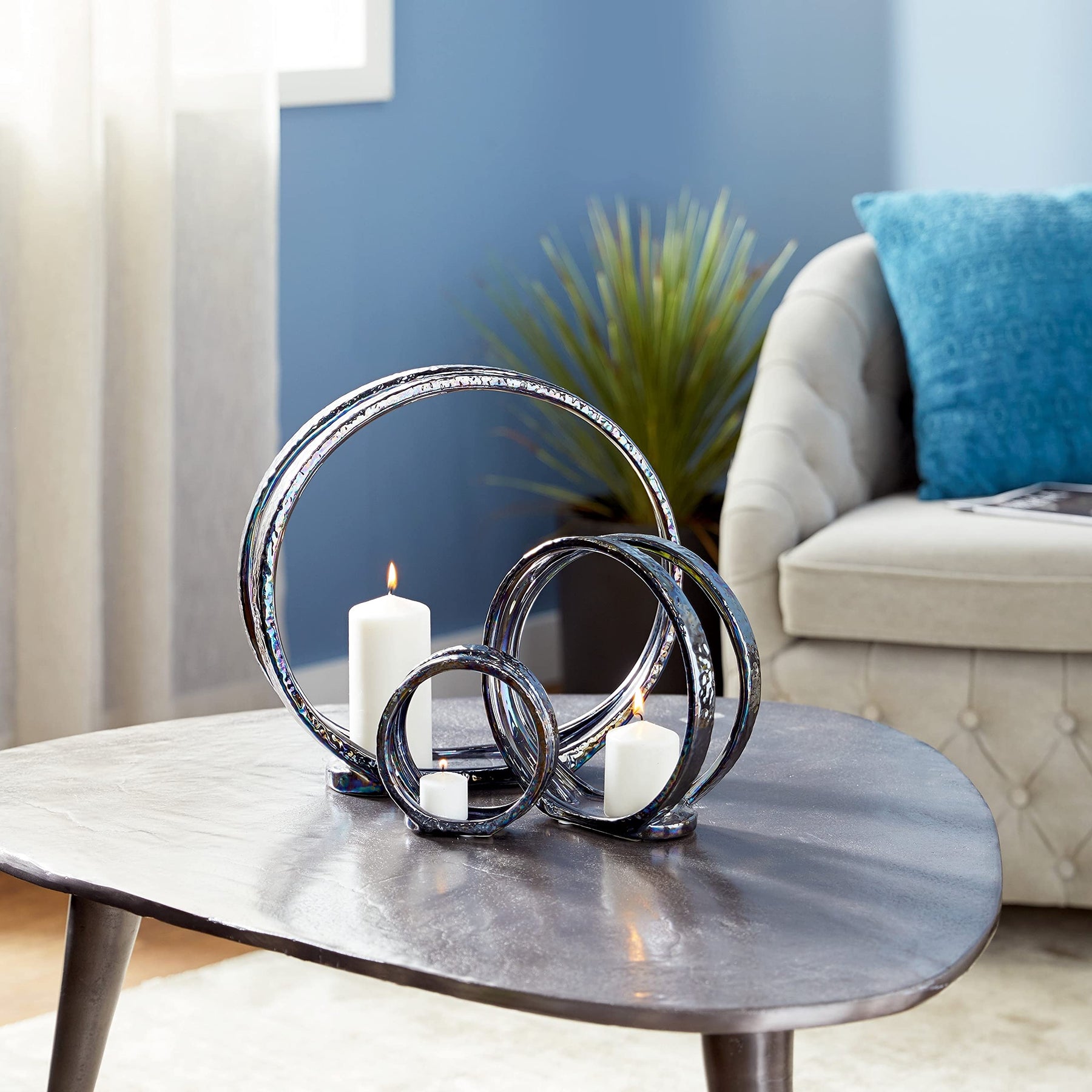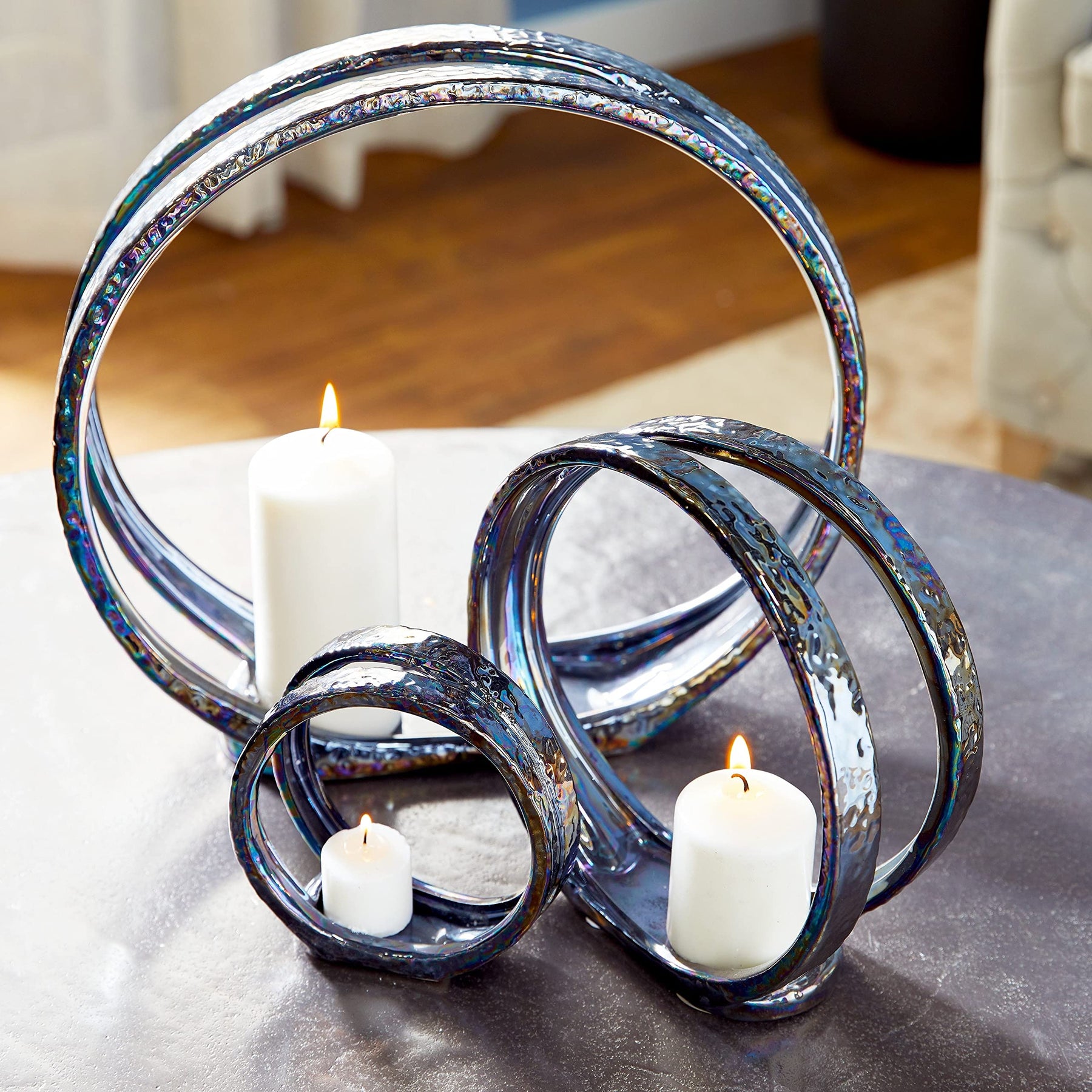 Grey Ceramic Ring Candle Holders (Set of 3) Traditional