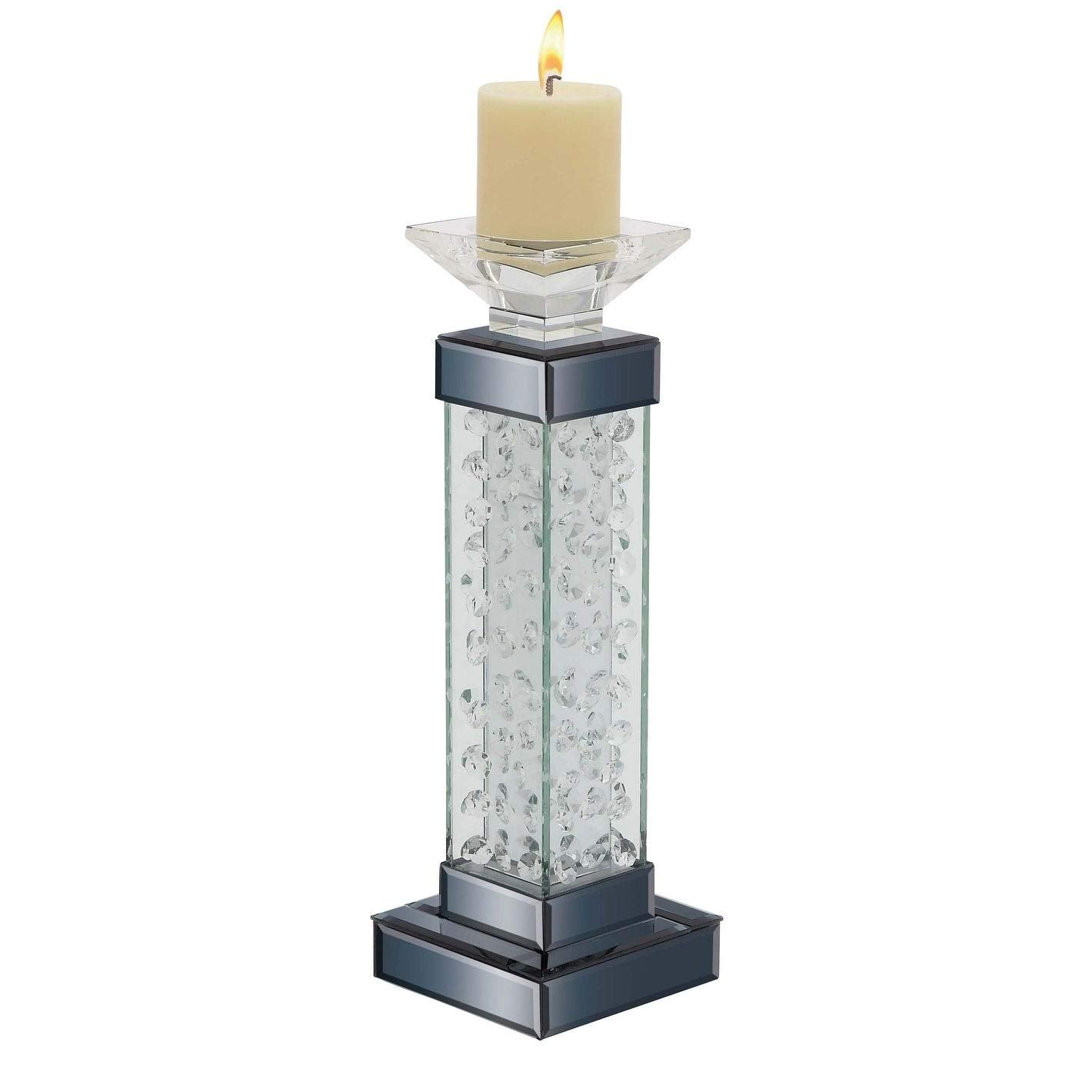 Tall Glass Encased Crystal Bubble Candleholder Clear Transitional 5 x
