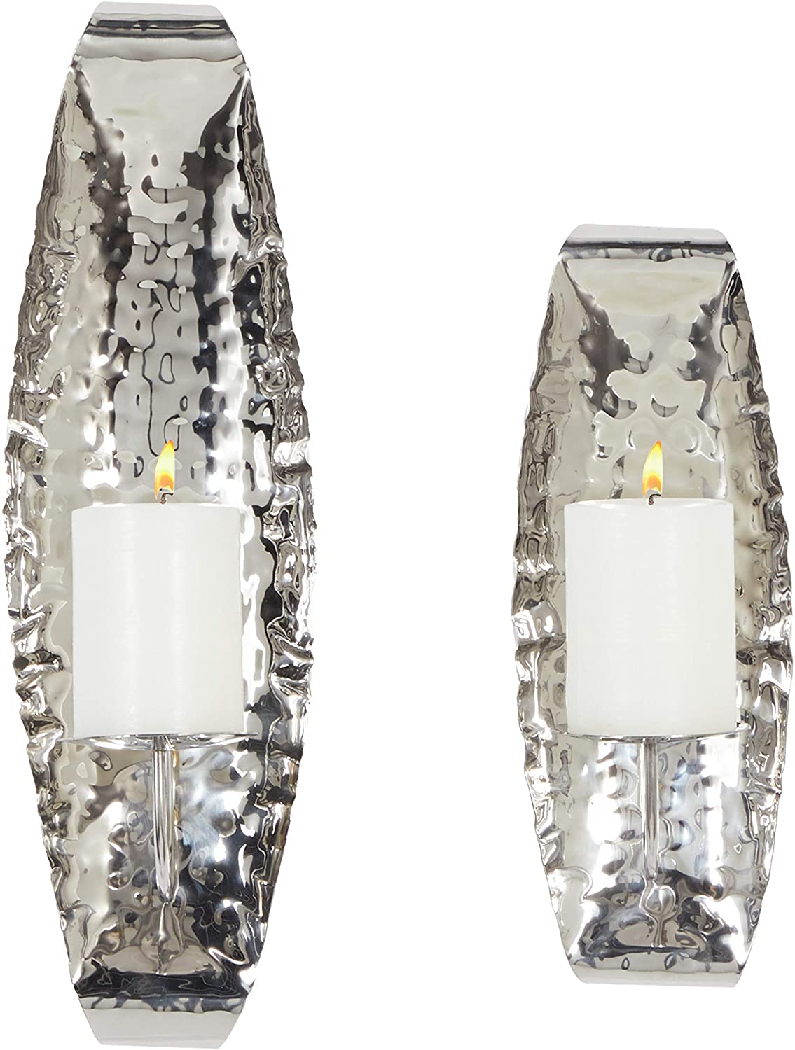 Silver Wall Sconce Candleholders Set 2 19" 14" 6 X
