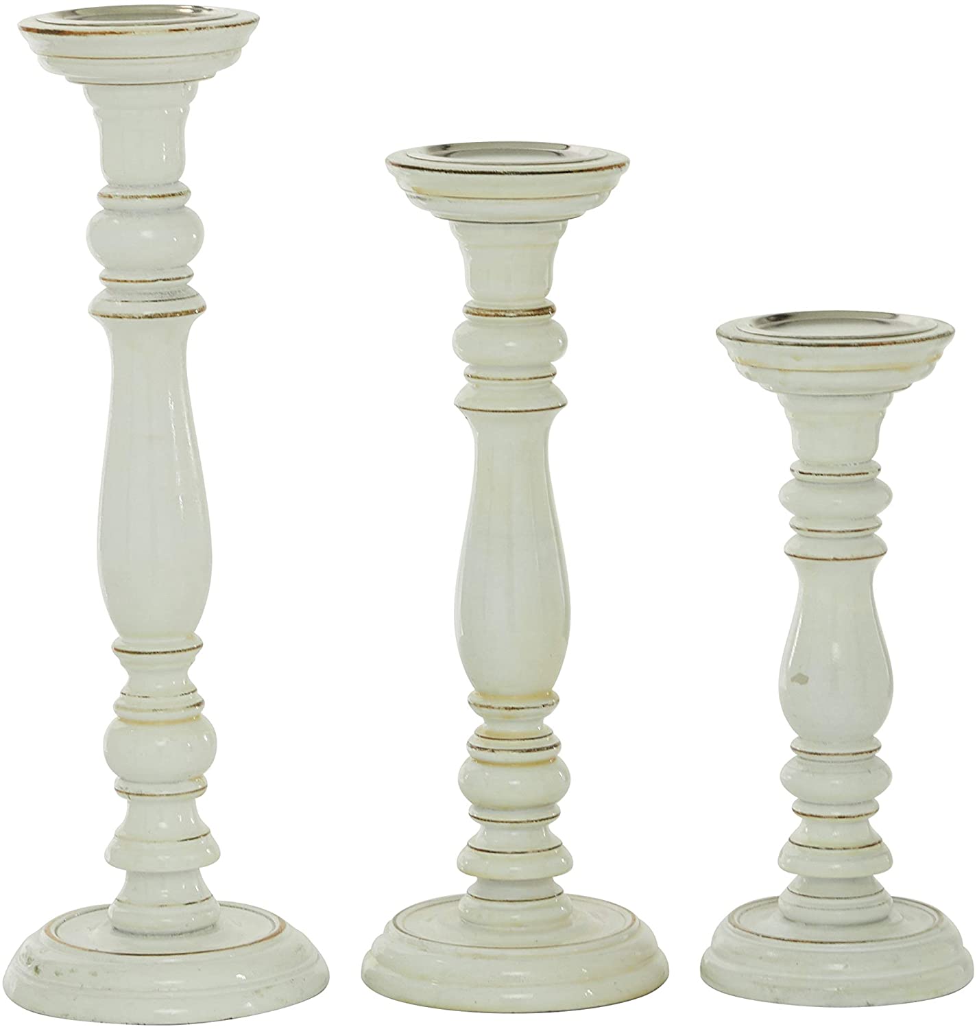 Tall White Wooden Candle Holders Set 3 12" 16" 18" 6 X 18 Wood - Diamond Home USA