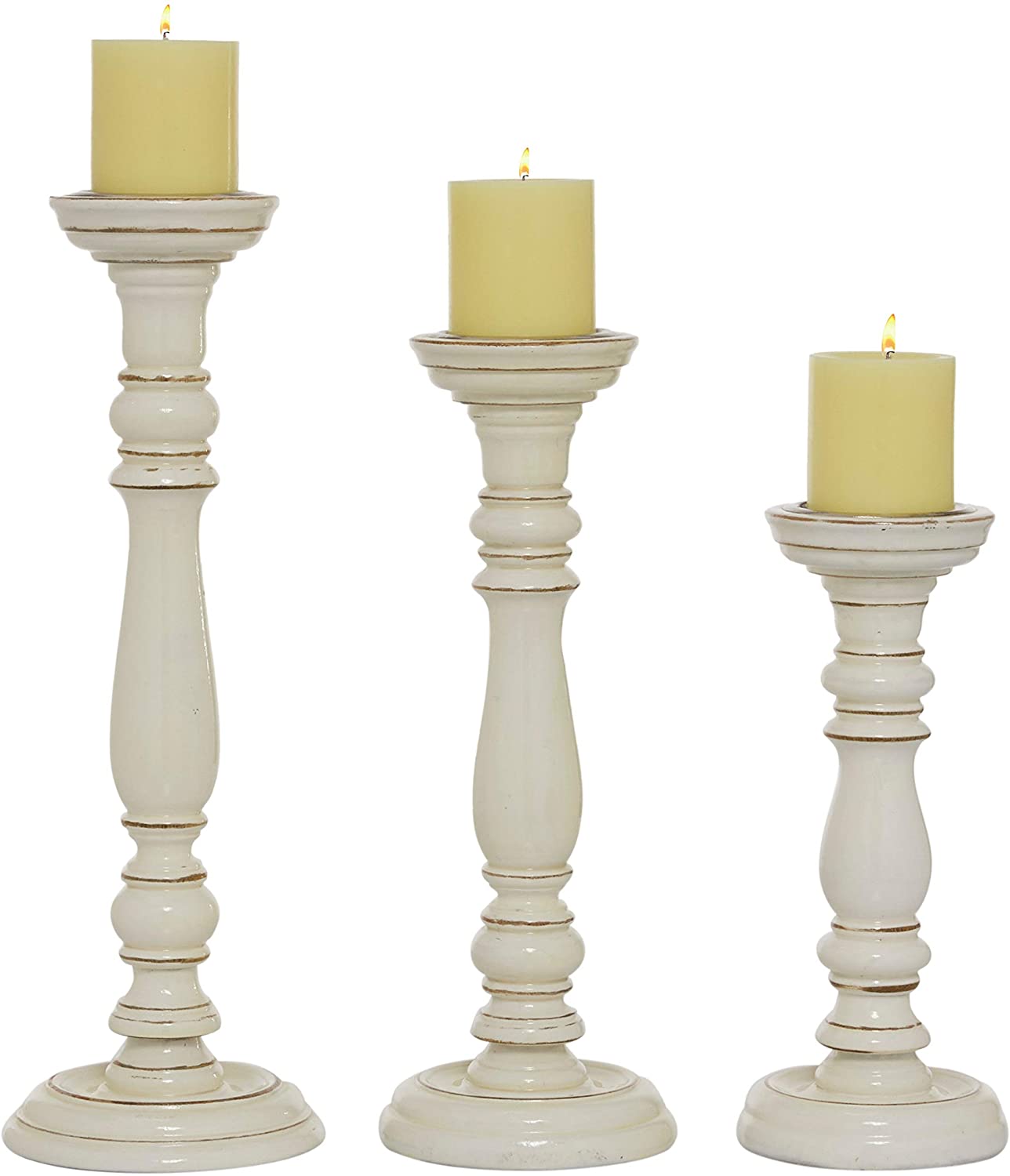 Tall White Wooden Candle Holders Set 3 12" 16" 18"
