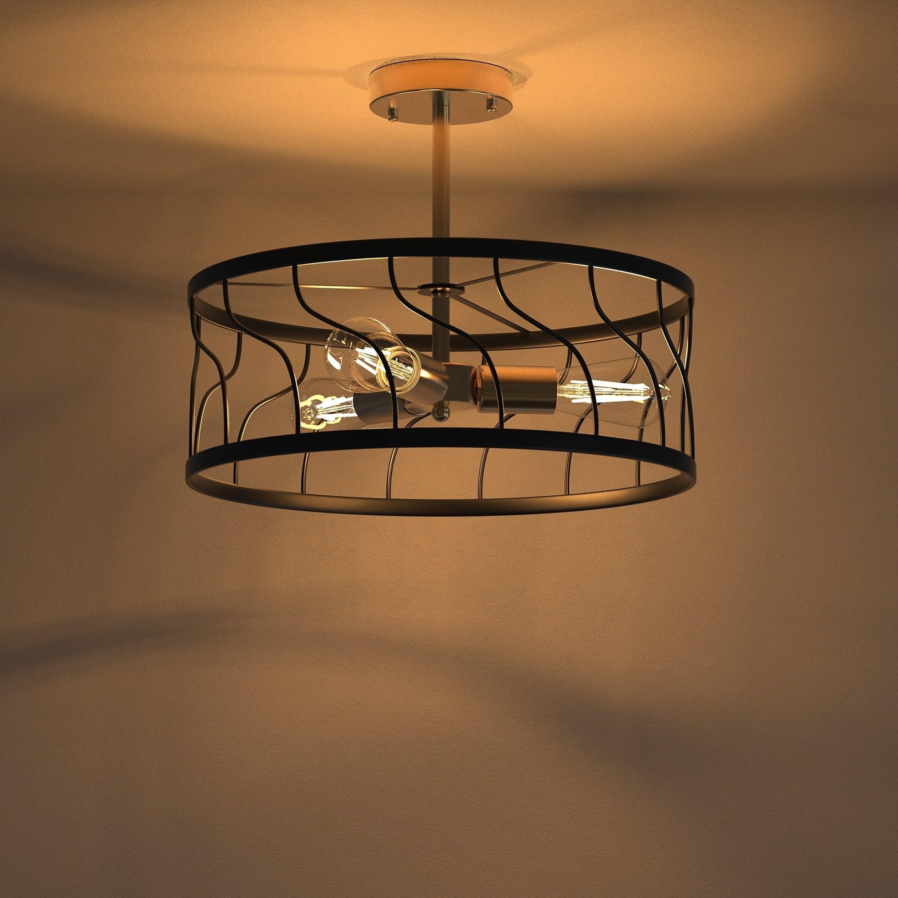 16.5 In. 3-light Black And Gold Drum Metal Semi-recessed Ceiling Light Modern Mininalit Semi-flush Mount T For Industrial Dimmable | Design/Look : Industrial. Material : Metal. Assembly : Assembly Required. Color : Black. Exact bulb wattage : 60. Exact number of lights : 3. Finish enhancements : Matte. Fixture design : Drum. Light bulb type : LED Compatible. Light direction : Multi-directional. Metal finish : Painted. Power source : Hardwired | Product Size: 16.54 In. W X 16.54 In. H X 7.28 In. D.