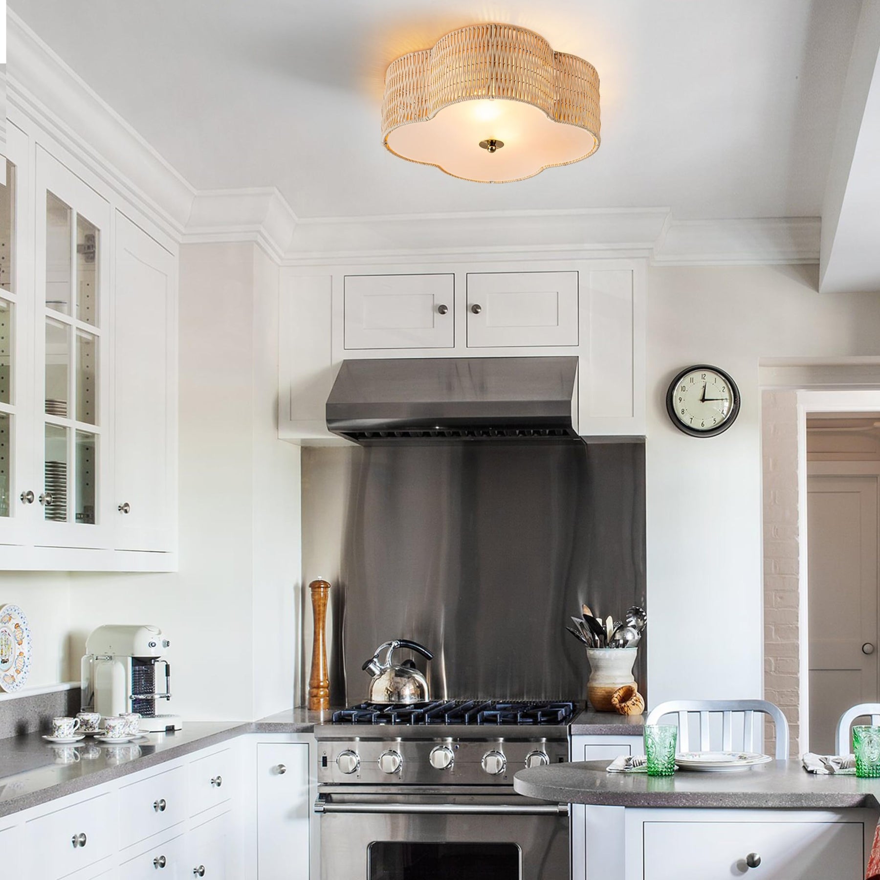 2-light Rattan Ceiling Flush Mount with Glass Bottom Yellow Nautical