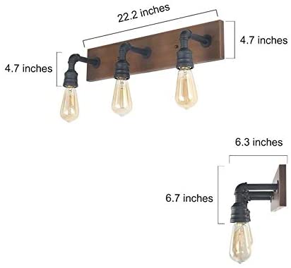 Farmhouse 3 Lights Black Faux Wood Bathroom Vanity Wall Lighting