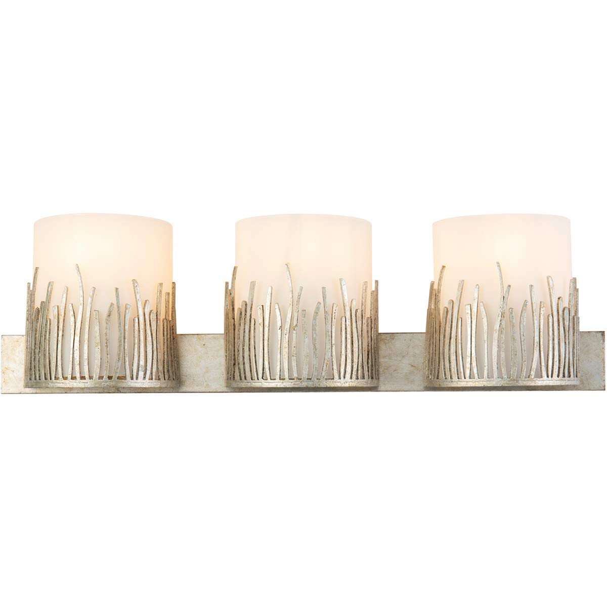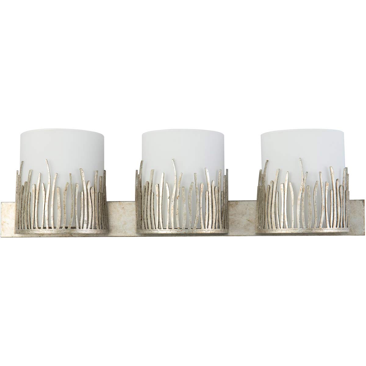 Find the light you love with this graceful and timeless silver leaf triple vanity light. The relaxing and spa-like feel of this bathroom fixture, gives a beautiful silhouette and bottom detail, making this the perfect choice to show your on-trend style in your bathroom space. The half drum piece of frosted glass sits perfectly in the 3 silver grass-like holders allowing just the right amount of light to flow into your space.