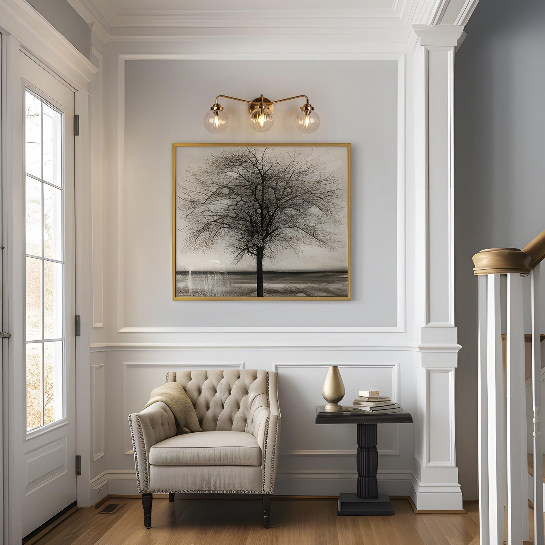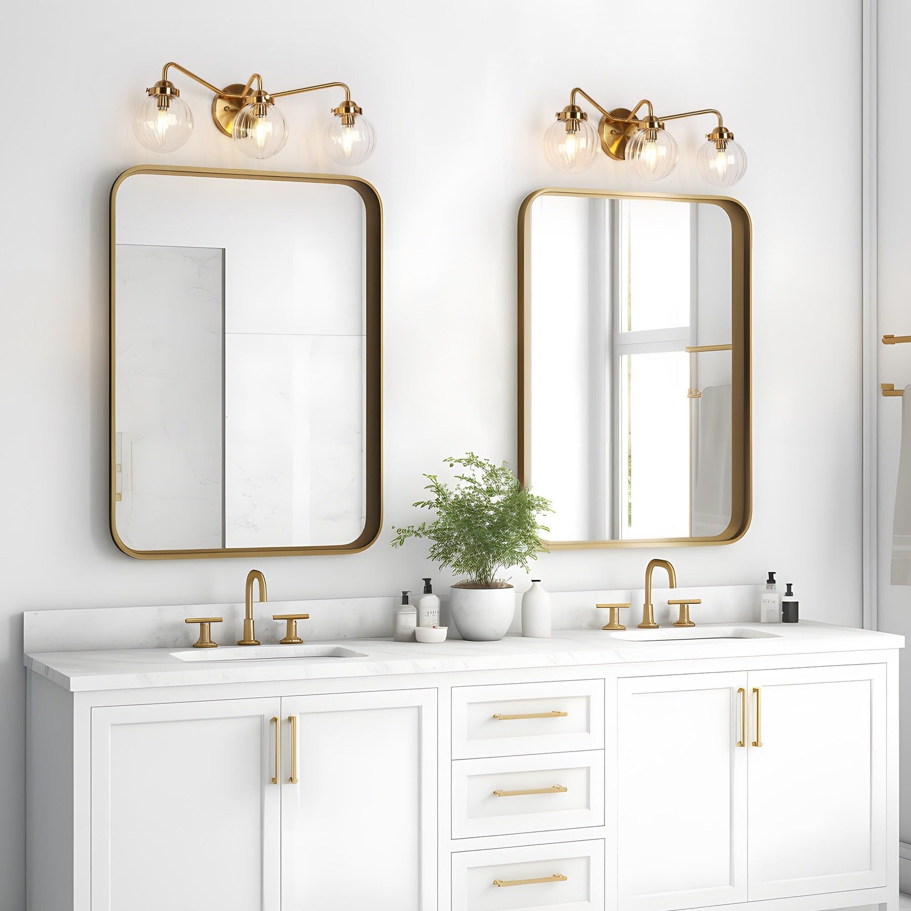 Mid-Century Modern 3-Light Gold Bathroom Vanity Lights Globe Glass Wall