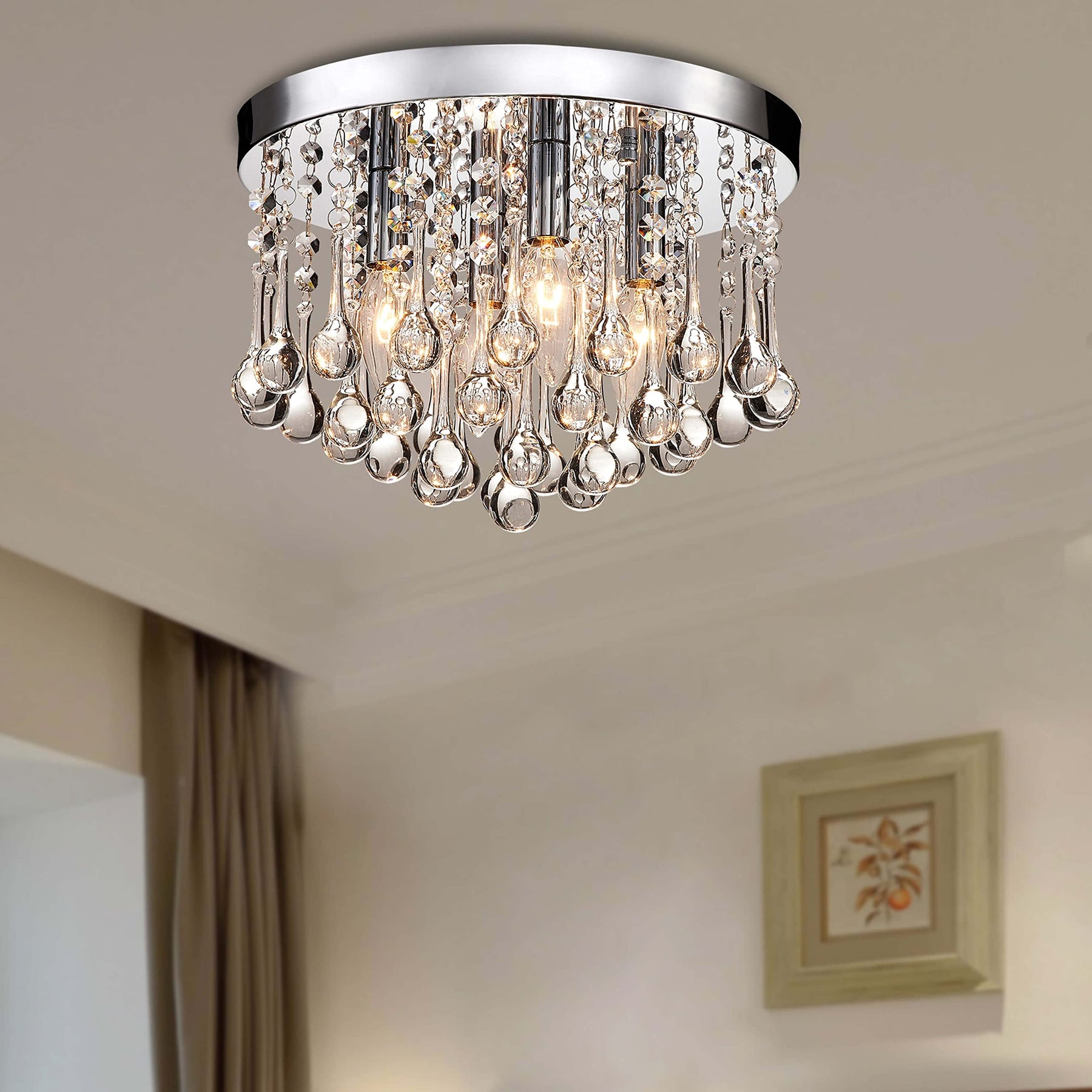 Title: Claudia 4-Light Chrome Finish Flush Mount with Clear Crystal Drops