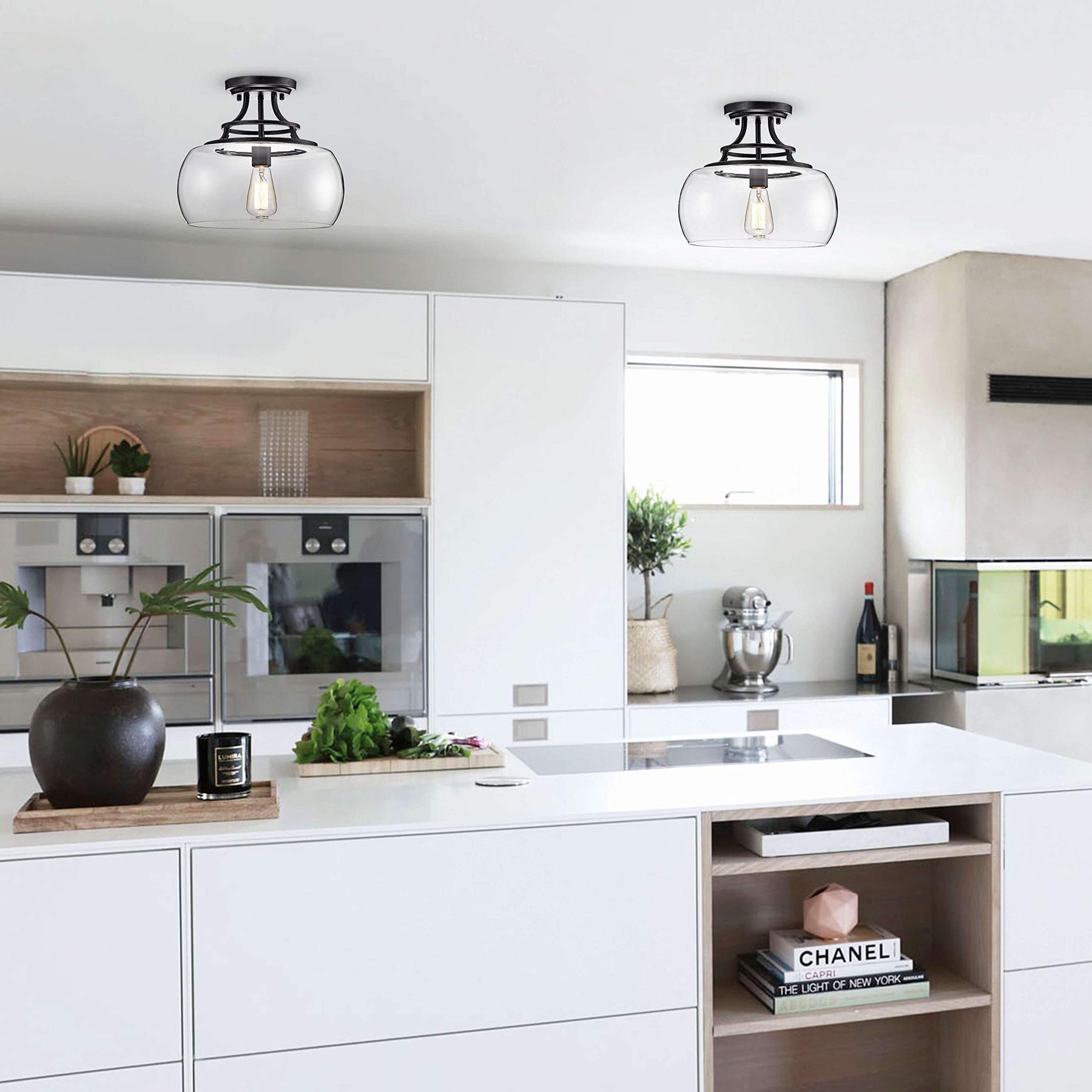 Antique Black Clear Glass Semi Flush Mount Chandelier - Traditional