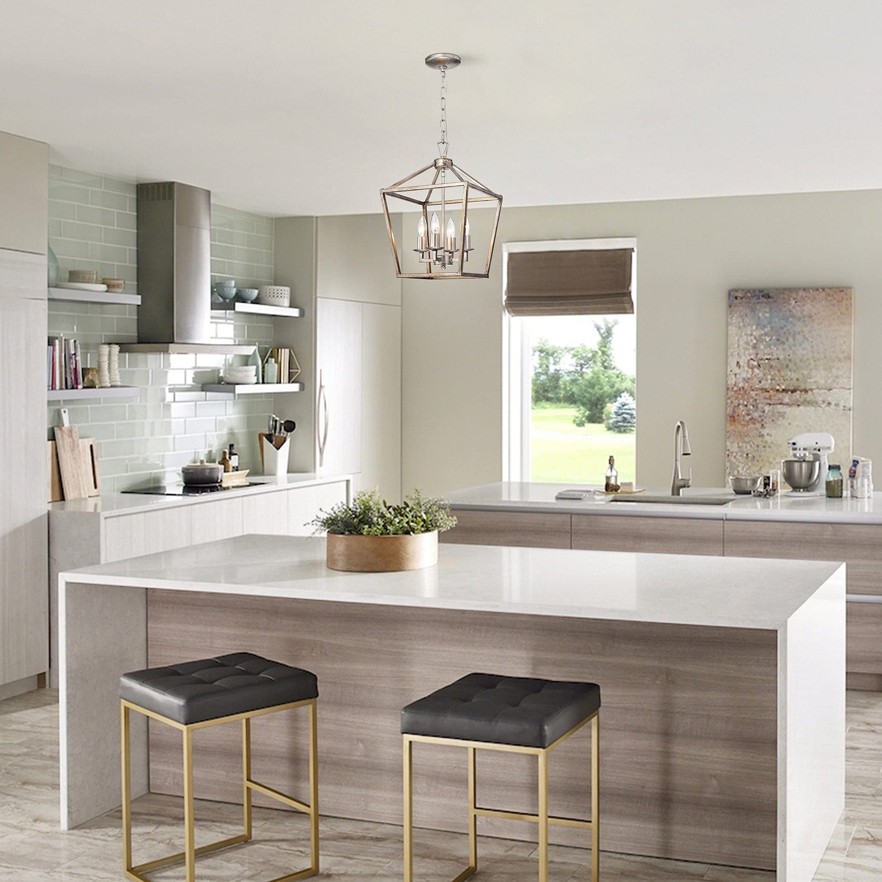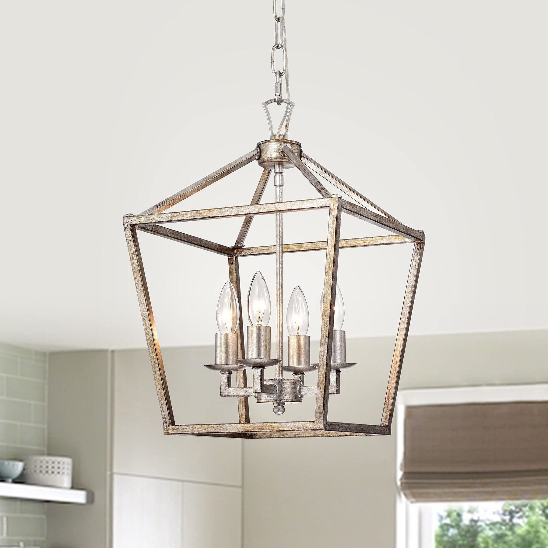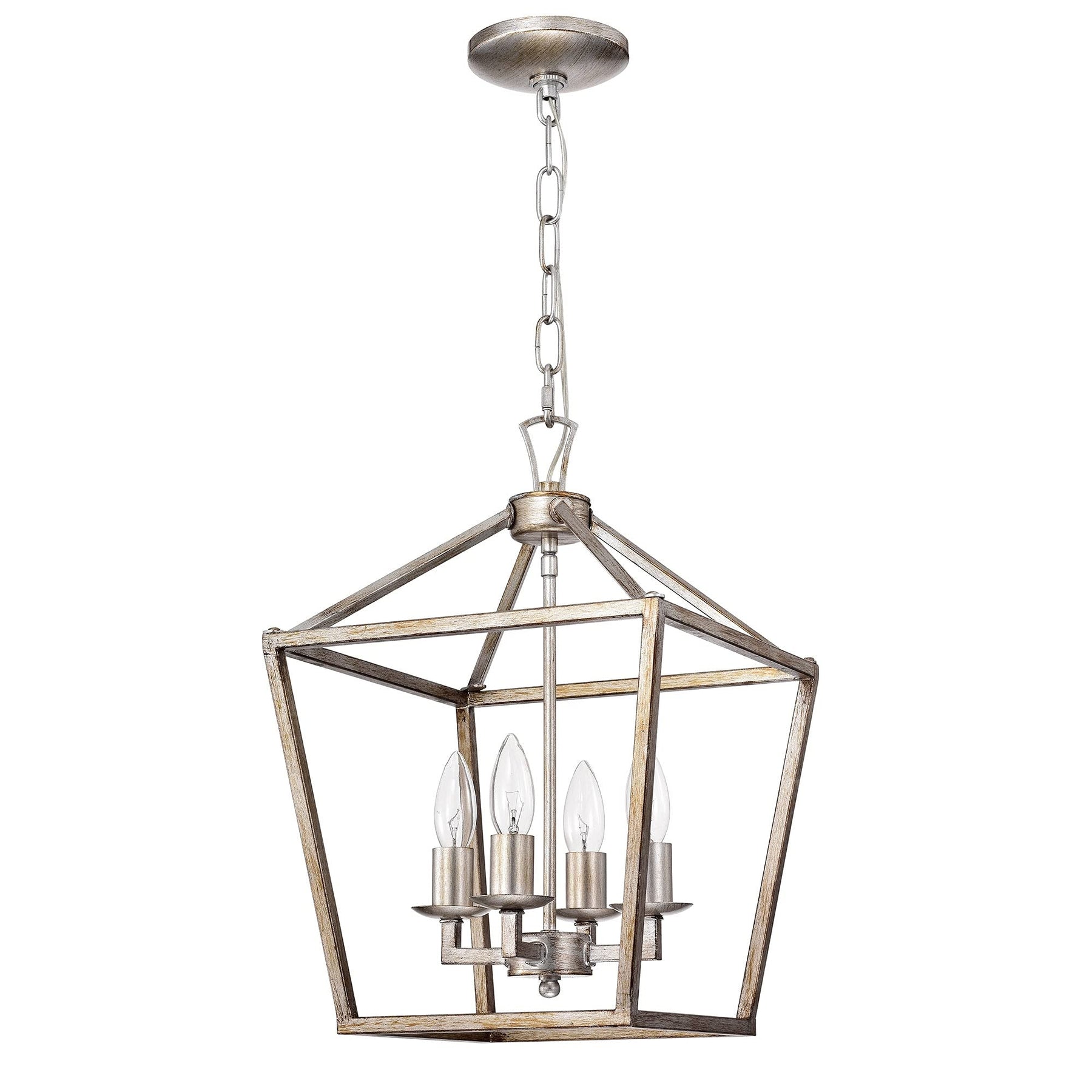 Antique Silver 4-light Open Metal Cage Lantern Chandelier Grey Metallic