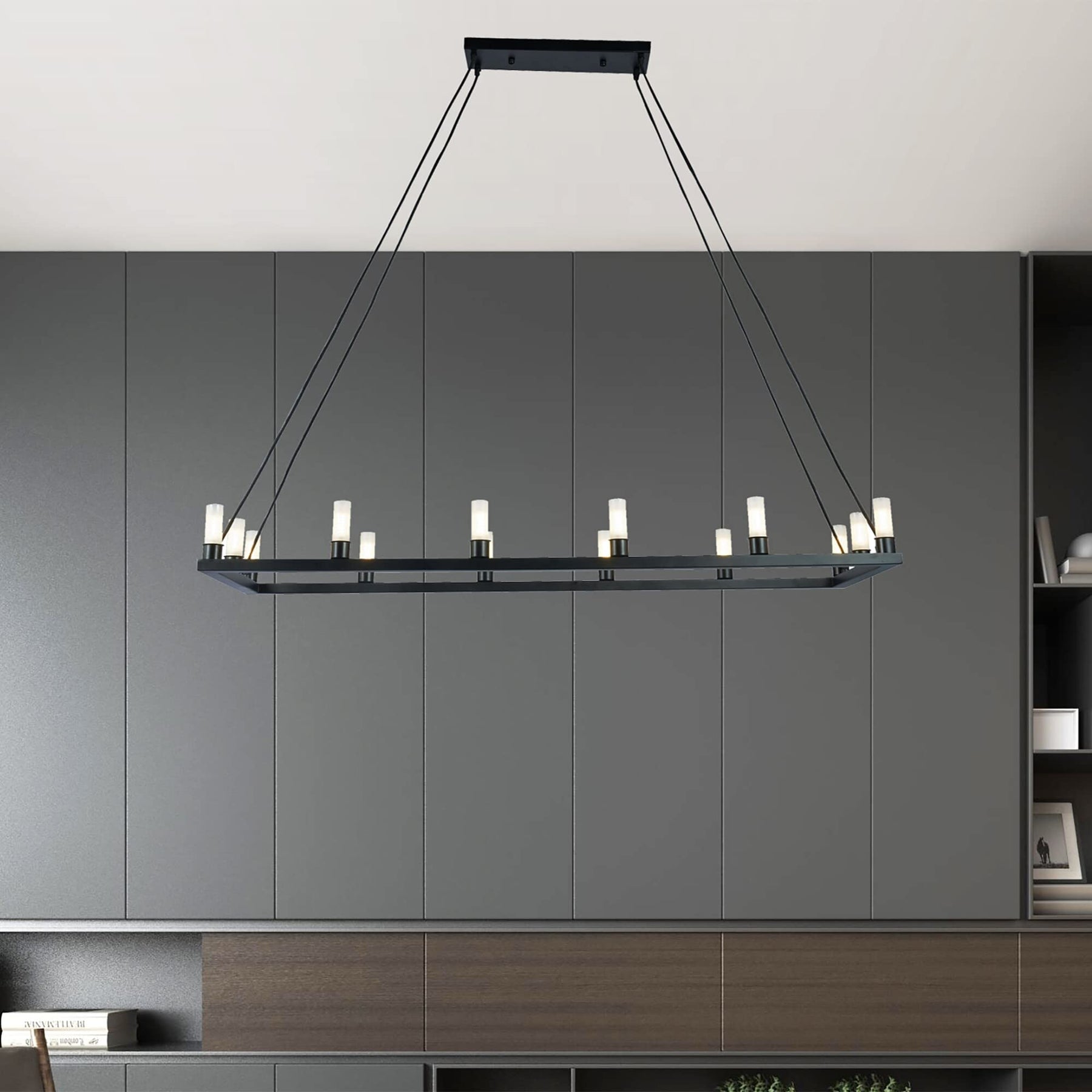 Black 14-light Linear Frame 47-inch Chandelier Industrial Mid-century Modern