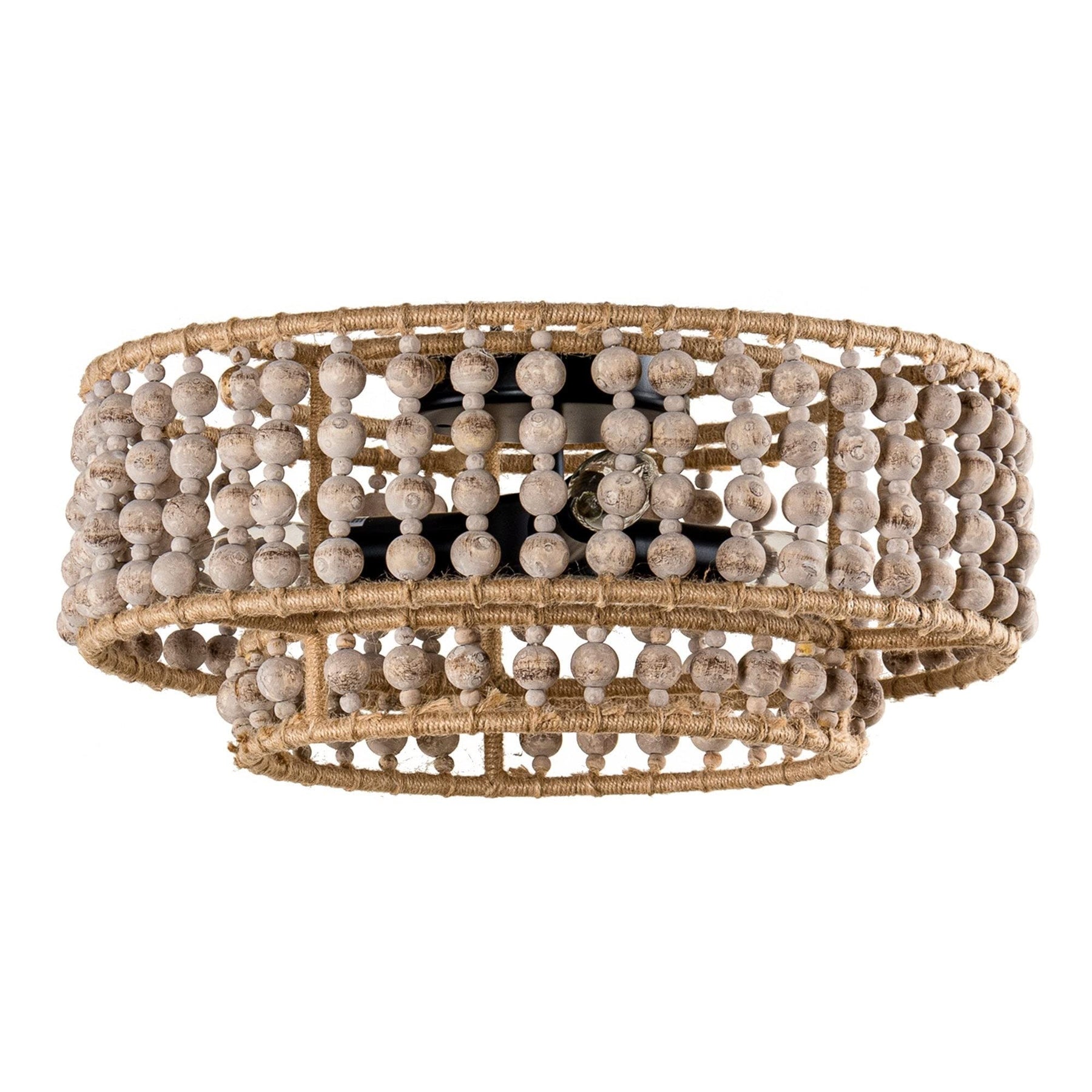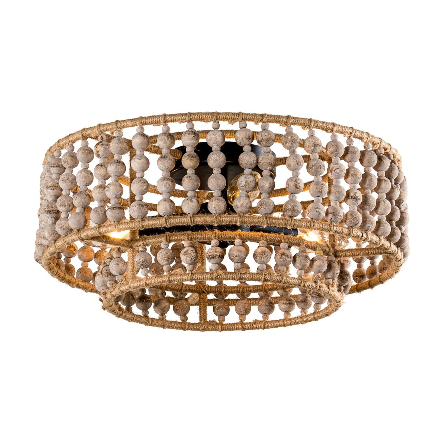 Boho 3-light Drum Wood Beaded Flush Mount Chandelier Brown Bohemian
