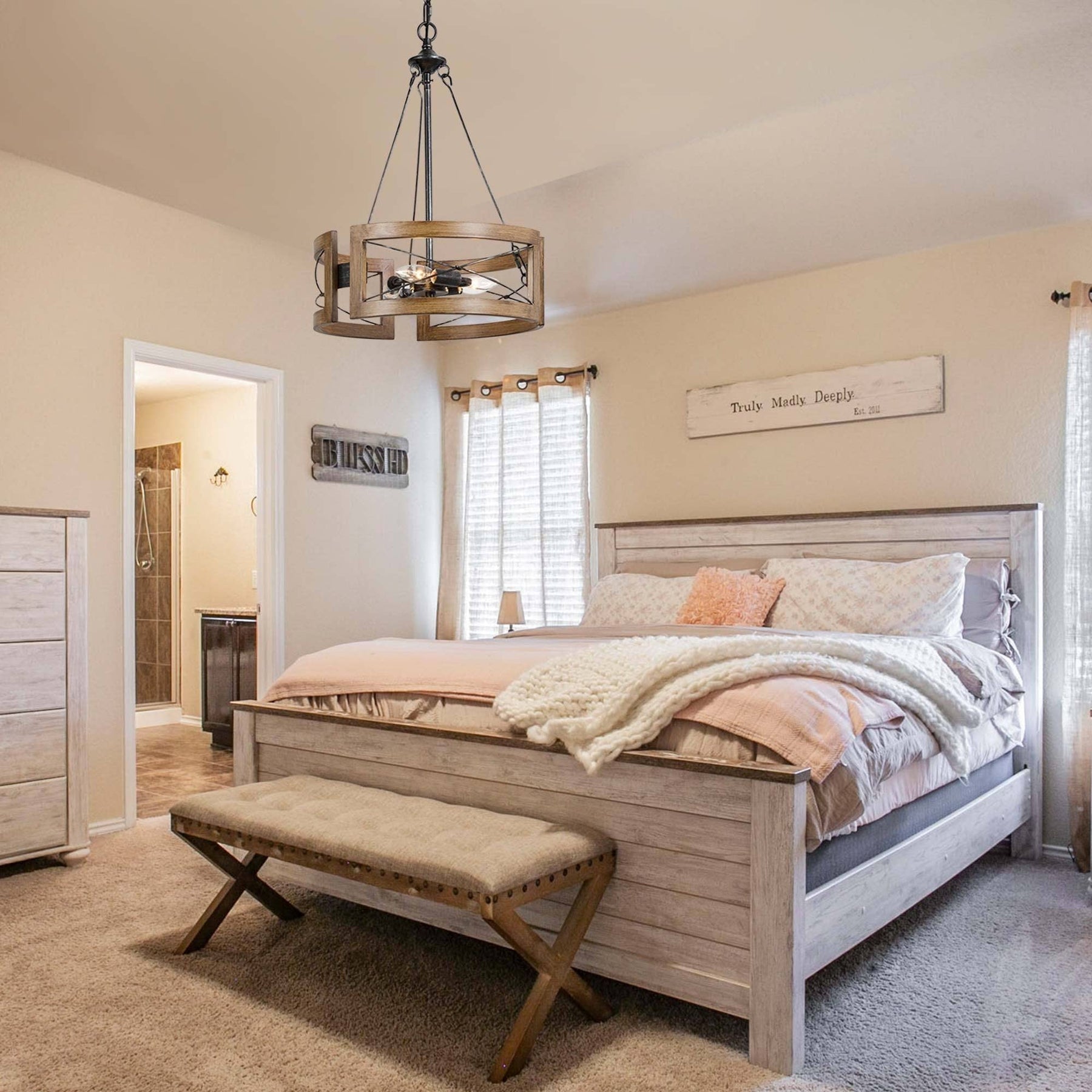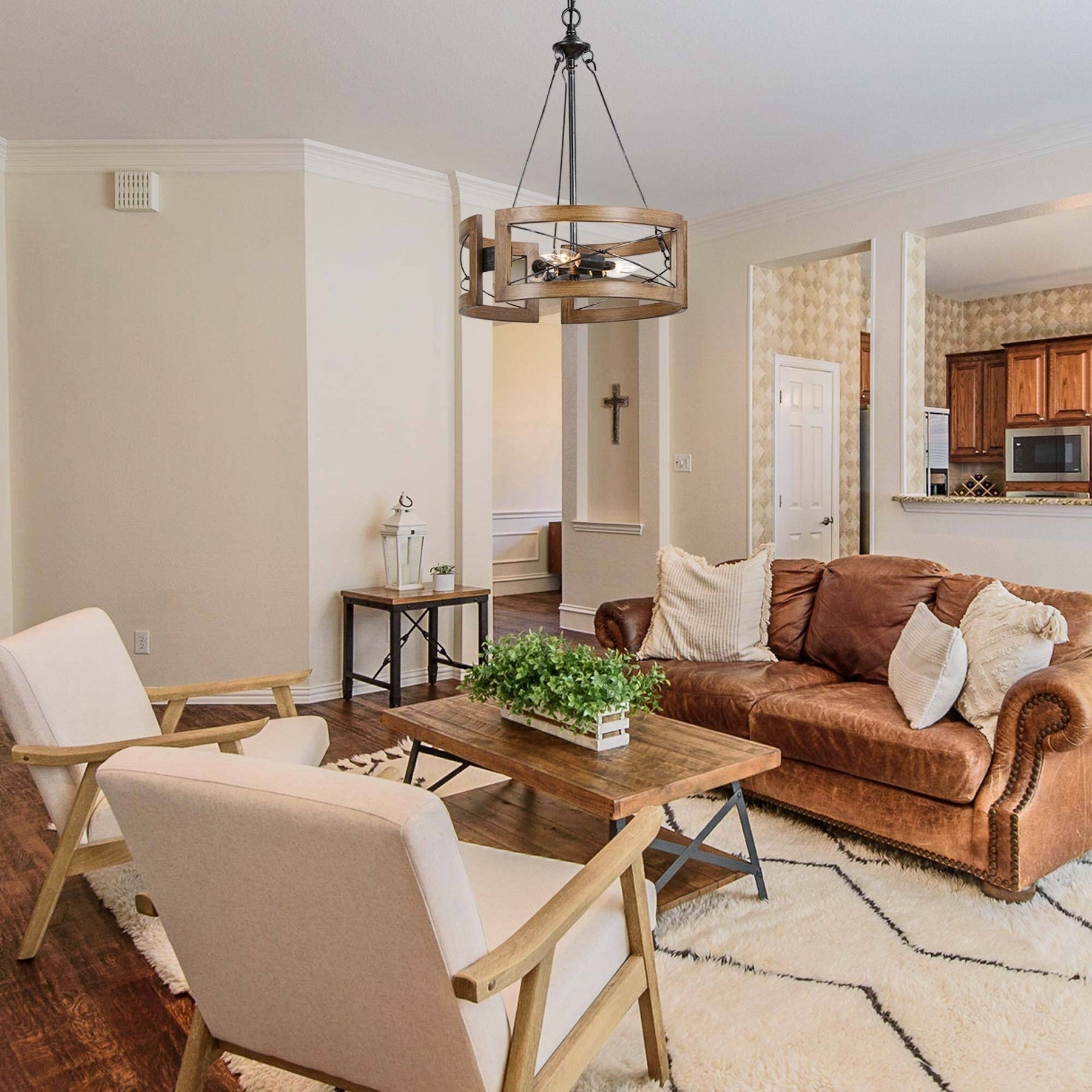 Farmhouse 3-light Drum Chandelier Wood Finish for Dining Room D15.5
