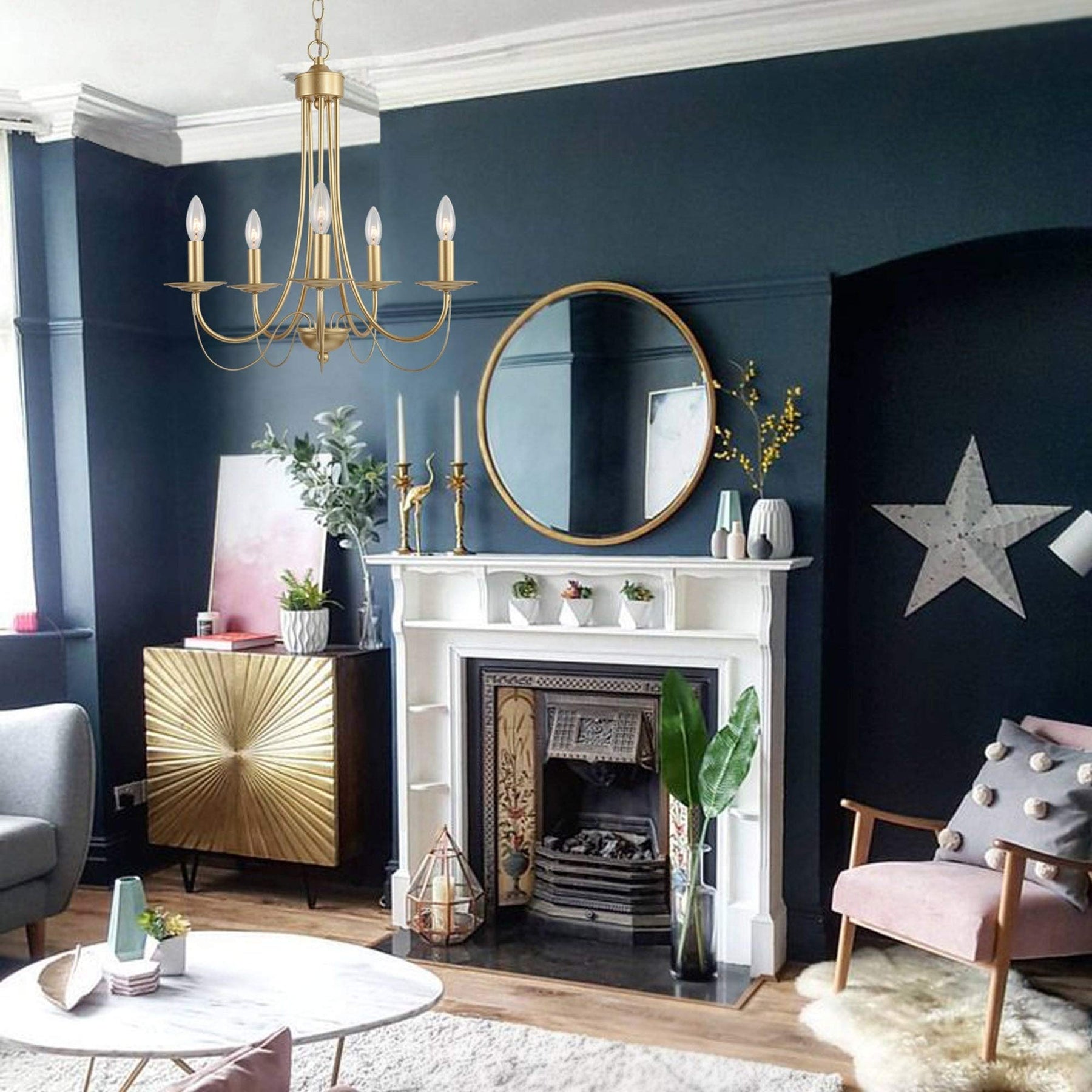 Gold 5-light French Candle Chandelier for Room Bedroom D18.5 X