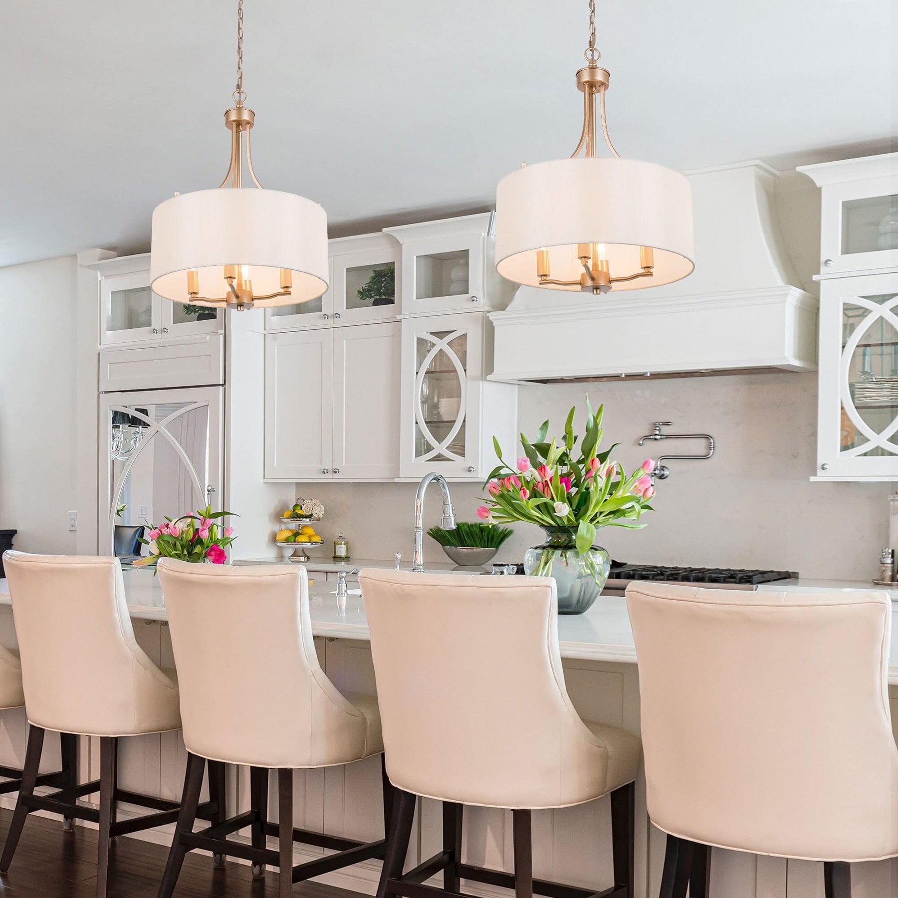Modern 4-light Gold Drum Chandelier for Living Room L15.7 X