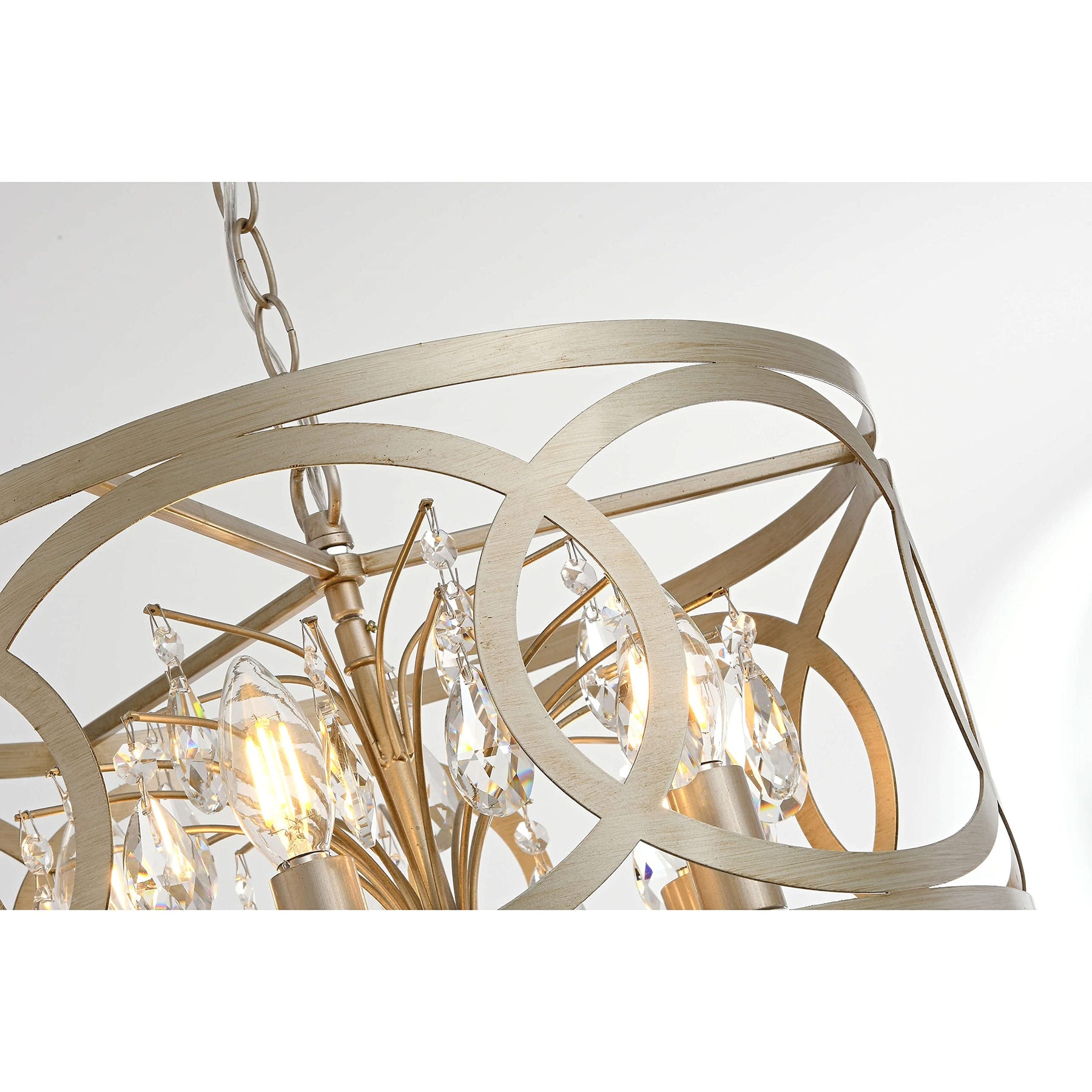 Title: Aurelia 5-light Brushed Champagne Silver Metal Cage Drum Chandelier