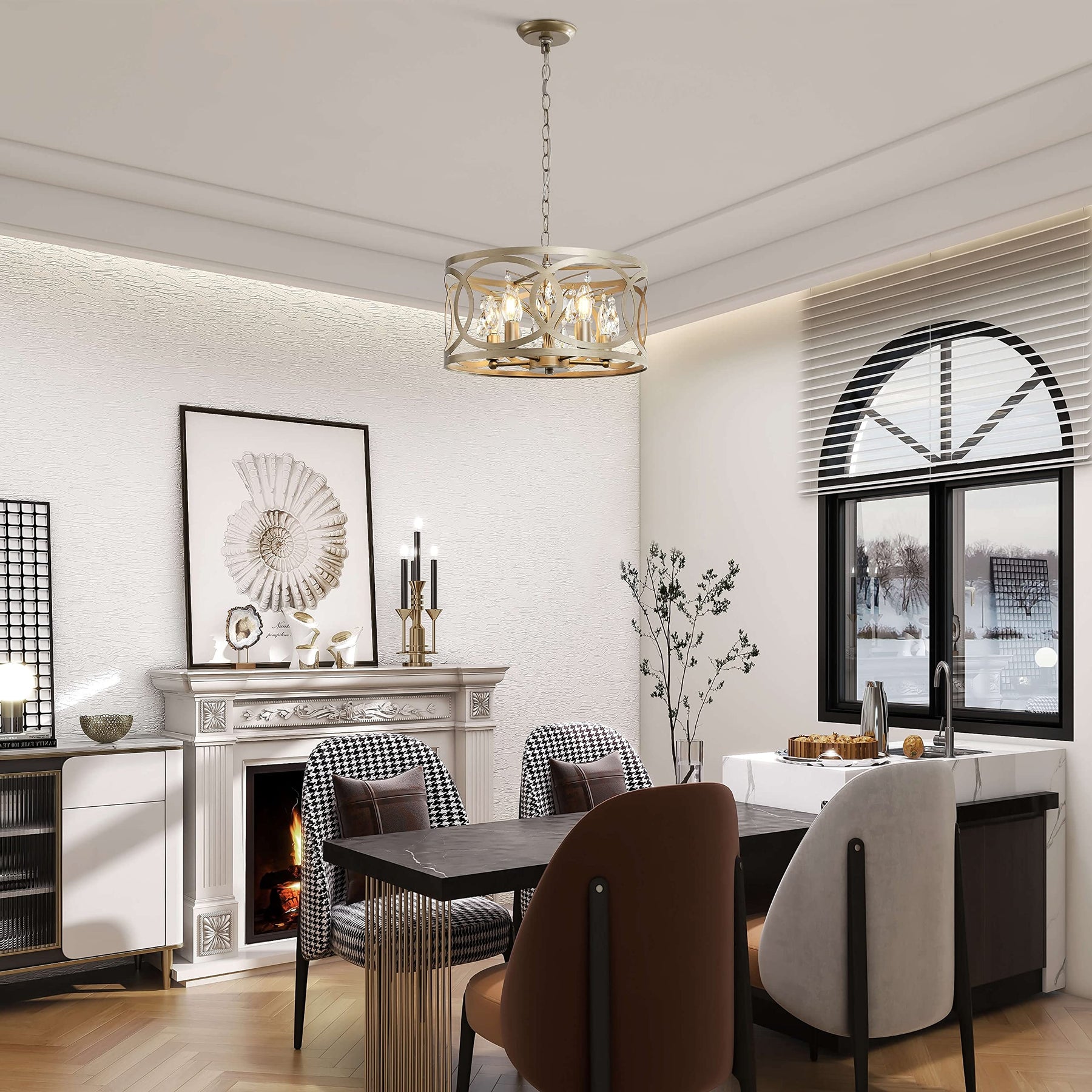The Lighting Store Aurelia 5-Light Brushed Champagne Silver Metal Cage Drum - Diamond Home USA