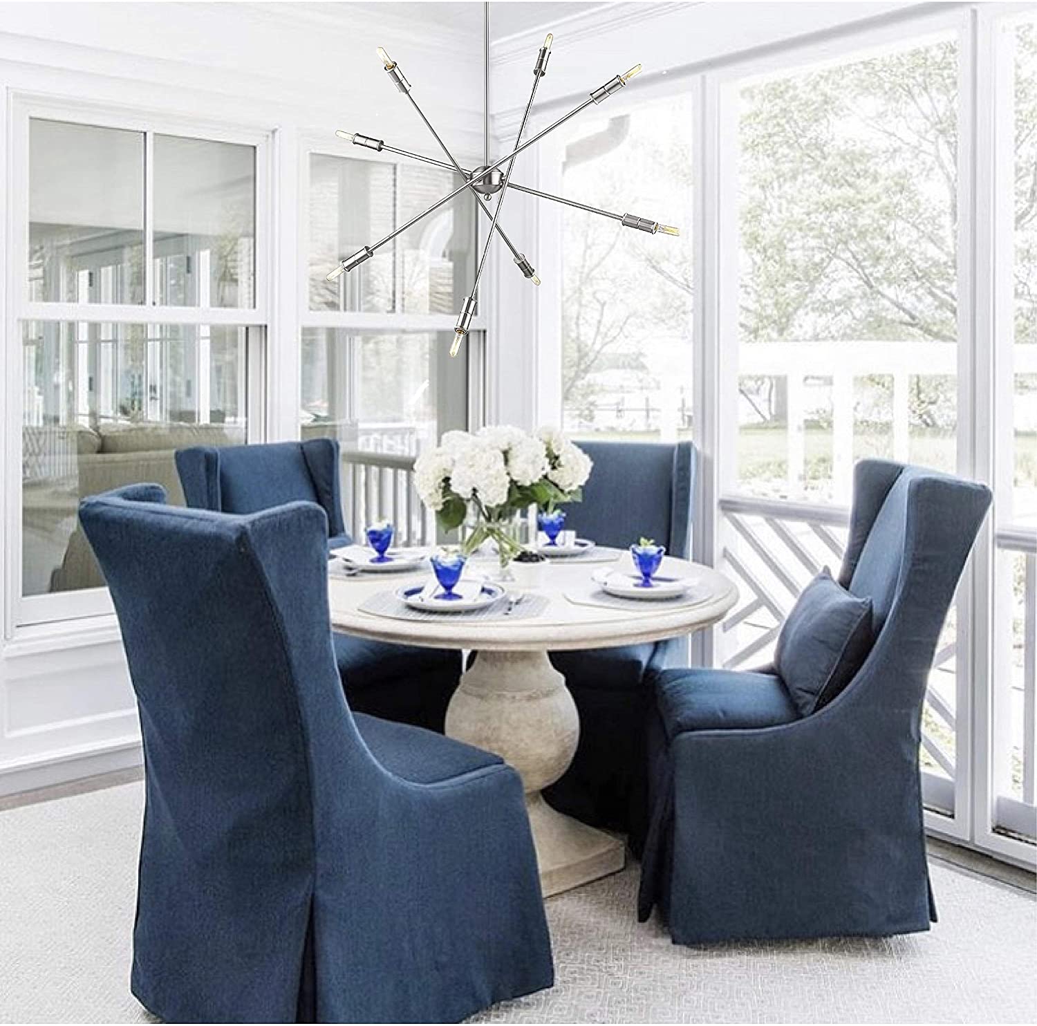 Mid Century Modern Sputnik Satin Nickel Chandelier Silver Mid Century